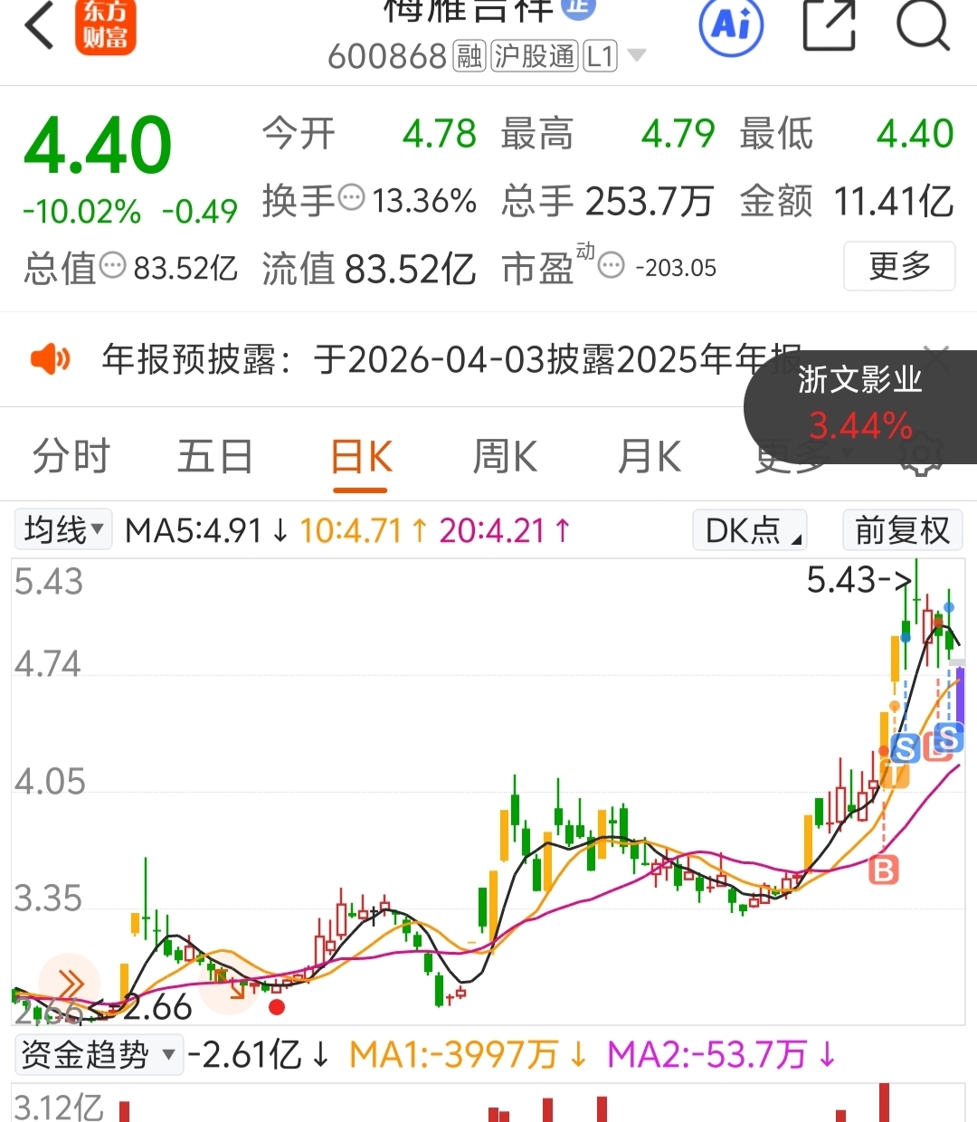 $梅雁吉祥(SH600868)$ 盘感很重要