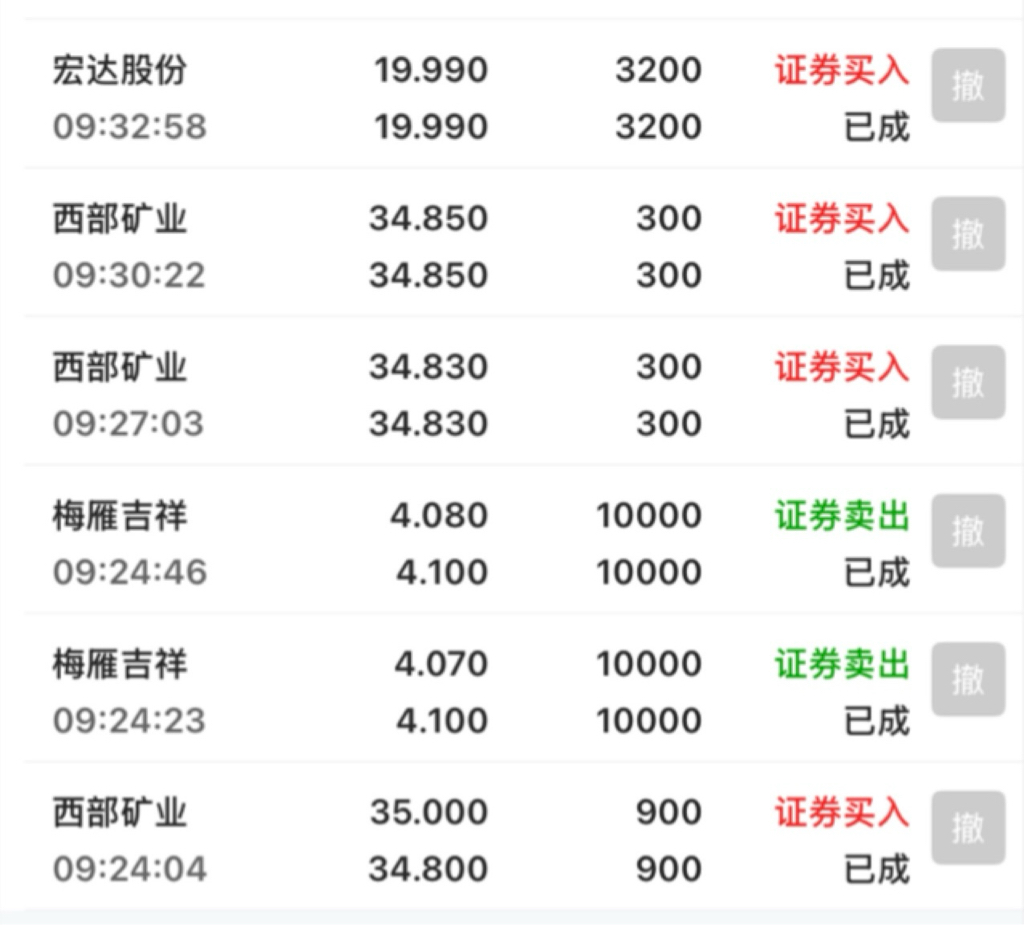 集合竞价已清仓,转战宏达股份和西部矿业
