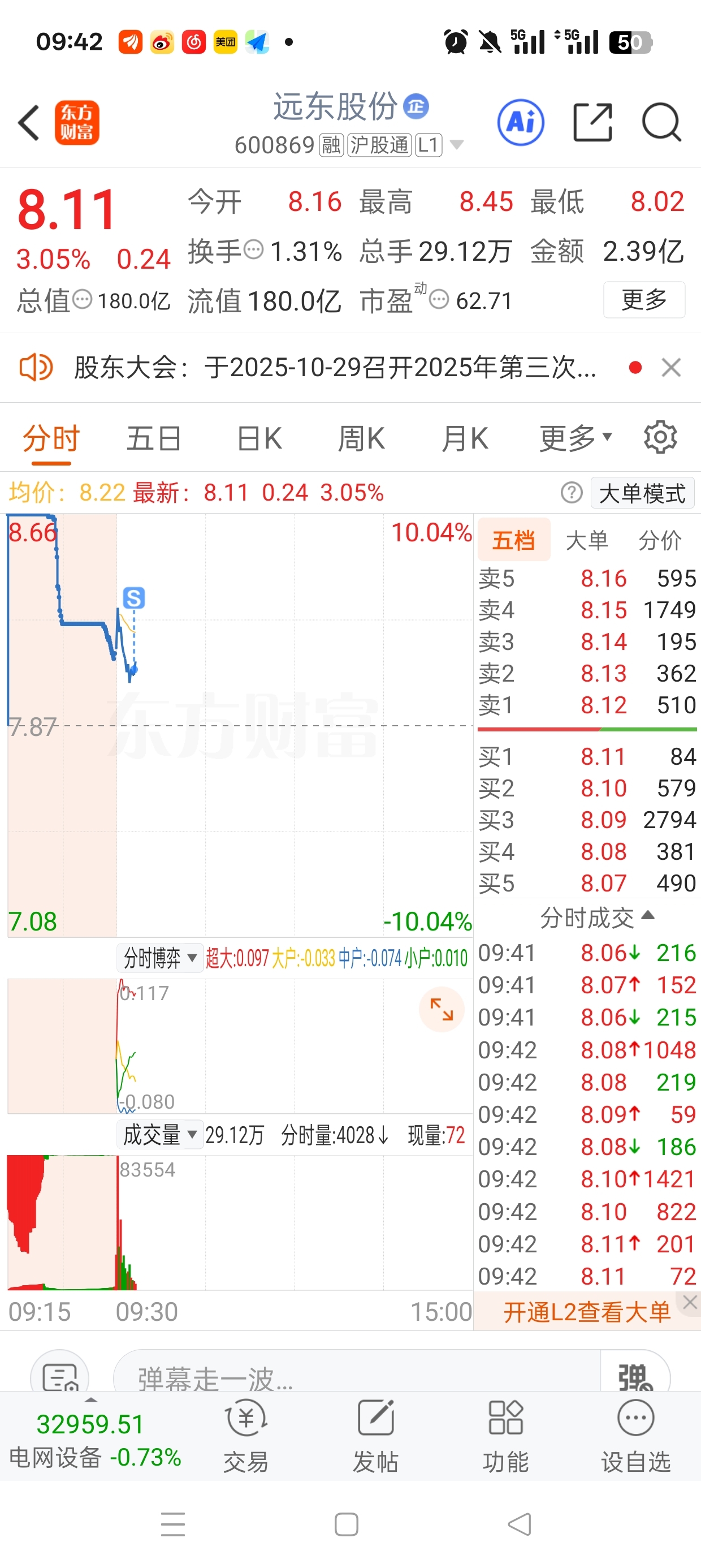 $远东股份(SH600869)$ 哎,走了 又是冲高回落