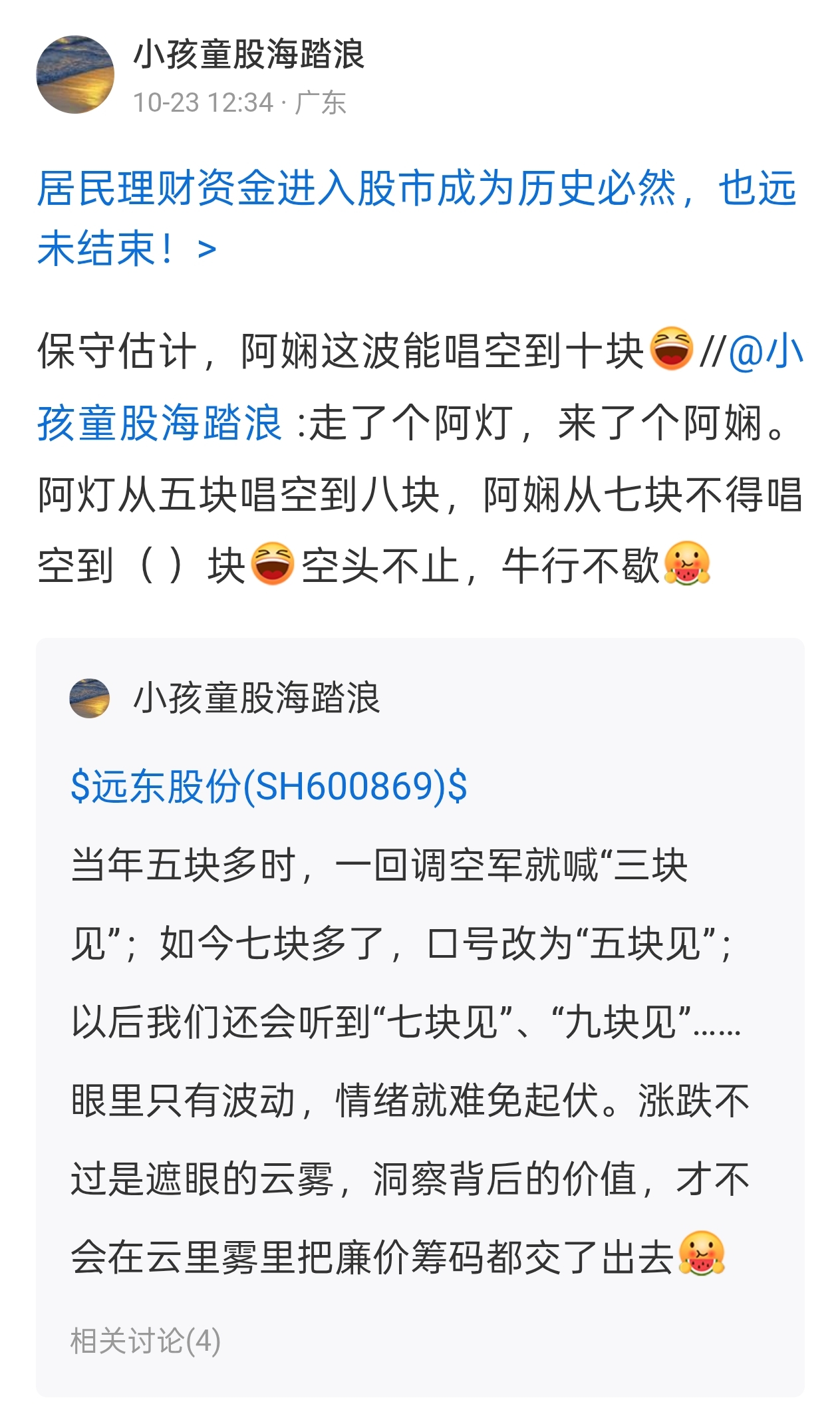 温馨提示: 1.根据《证券法》规定,禁止编造、传播虚假信息或者误导性信息,扰乱证券市场;2.用户在本社区发表的所有资料、言论等仅代表个人观点,与本网站立场无关,不对您构成任何投资建议。用户应基于自己的独立判断,自行决定证券投资并承担相应风险。《东方财富社区管理规定》