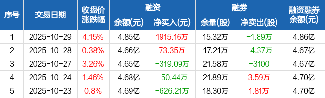 远东股份:融资净买入1915.16万元,融资余额4.85亿元(10-29)