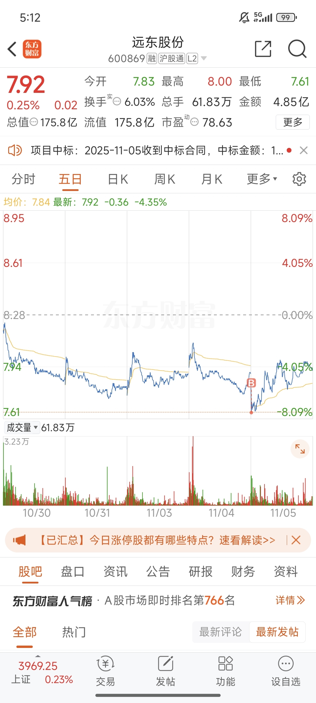 $远东股份(SH600869)$ 买在五日最低点 希望能吃点肉