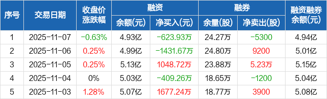 远东股份:融资净偿还623.93万元,融资余额4.93亿元(11-07)