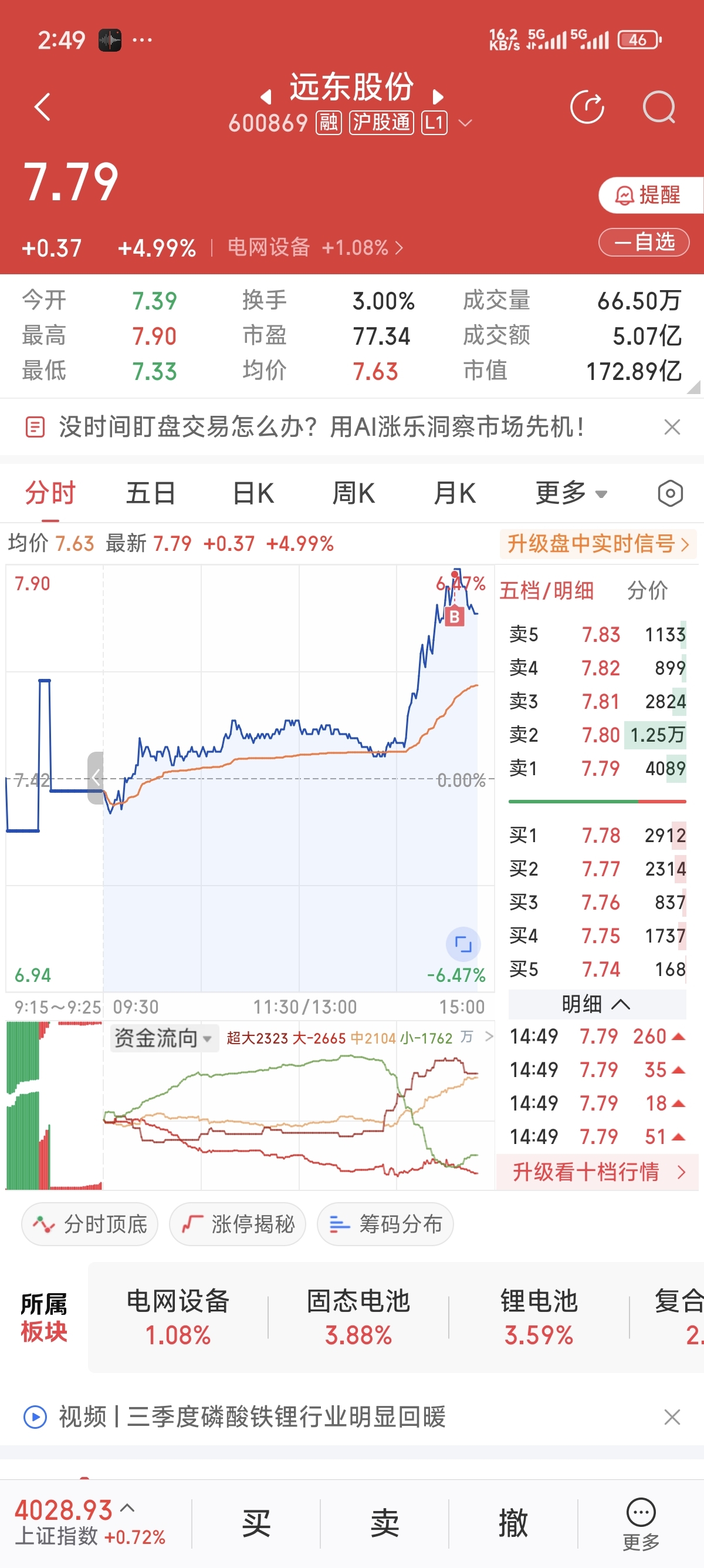 $远东股份(SH600869)$ 想赚钱,见去吧