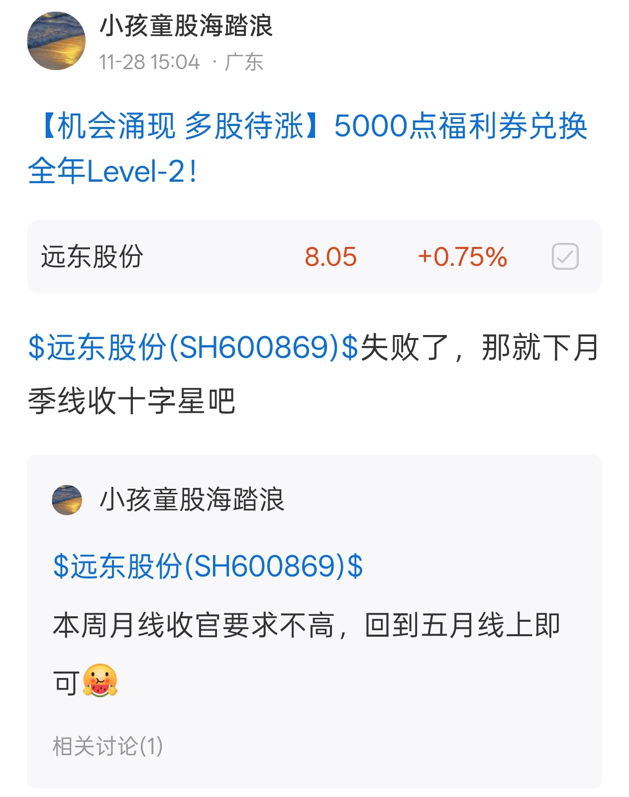 温馨提示: 1.根据《证券法》规定,禁止编造、传播虚假信息或者误导性信息,扰乱证券市场;2.用户在本社区发表的所有资料、言论等仅代表个人观点,与本网站立场无关,不对您构成任何投资建议。用户应基于自己的独立判断,自行决定证券投资并承担相应风险。《东方财富社区管理规定》