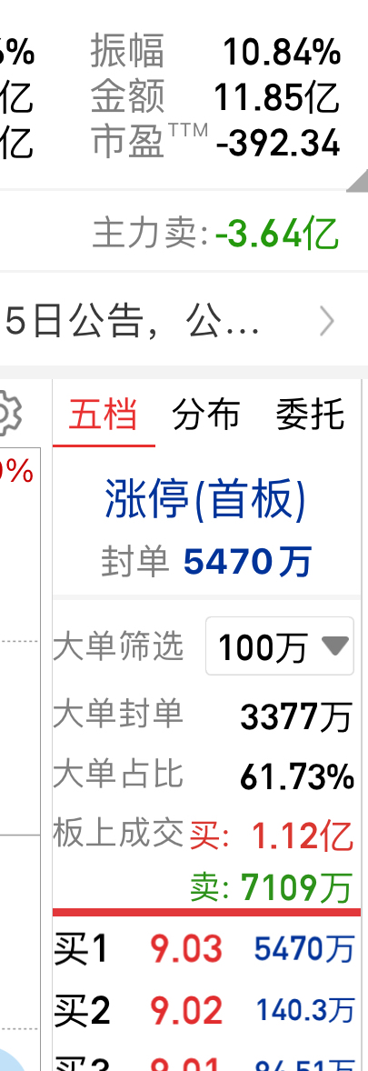 $远东股份(SH600869)$ 主力在板上卖了不少,散户接盘.