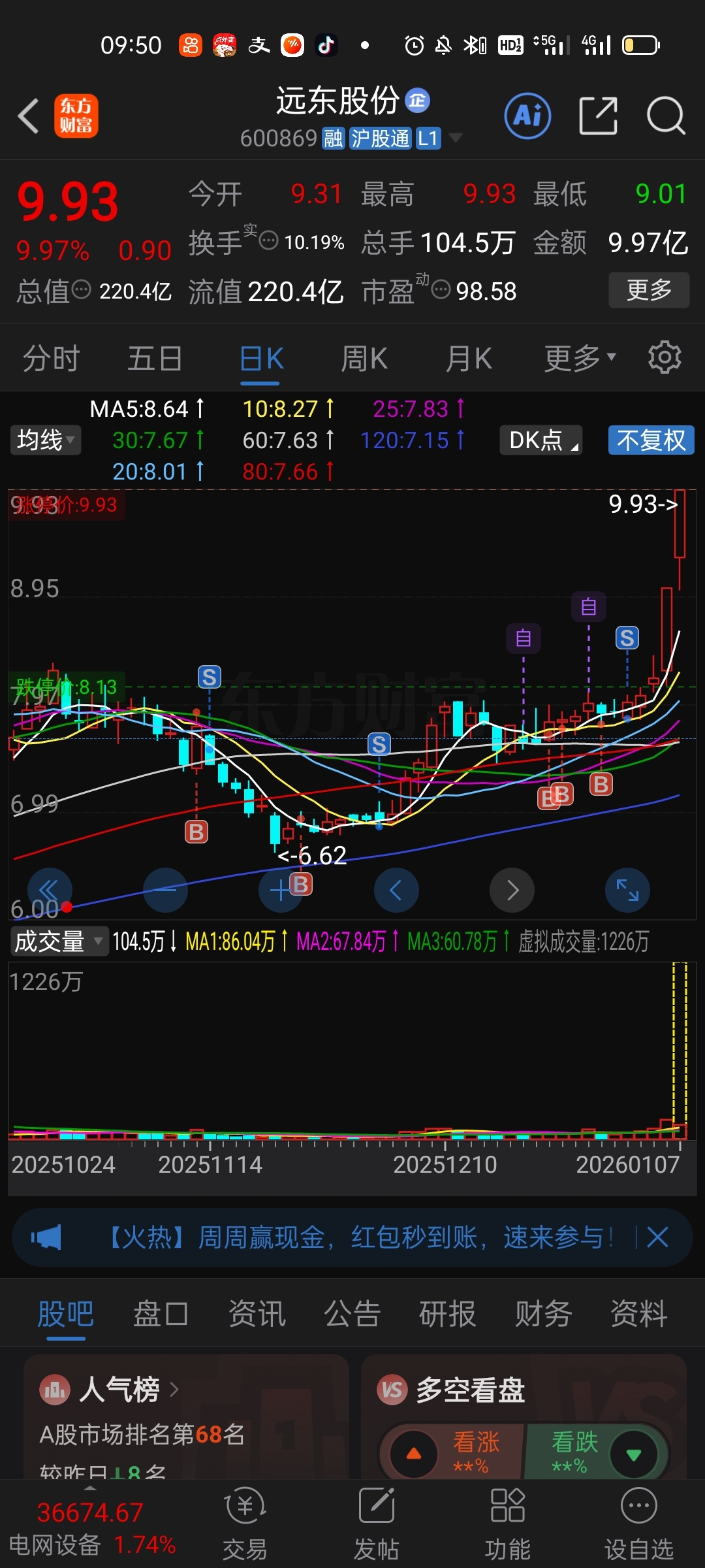$远东股份(SH600869)$ 妹的,每次都是上涨前卖飞,有没有大哥指点一下