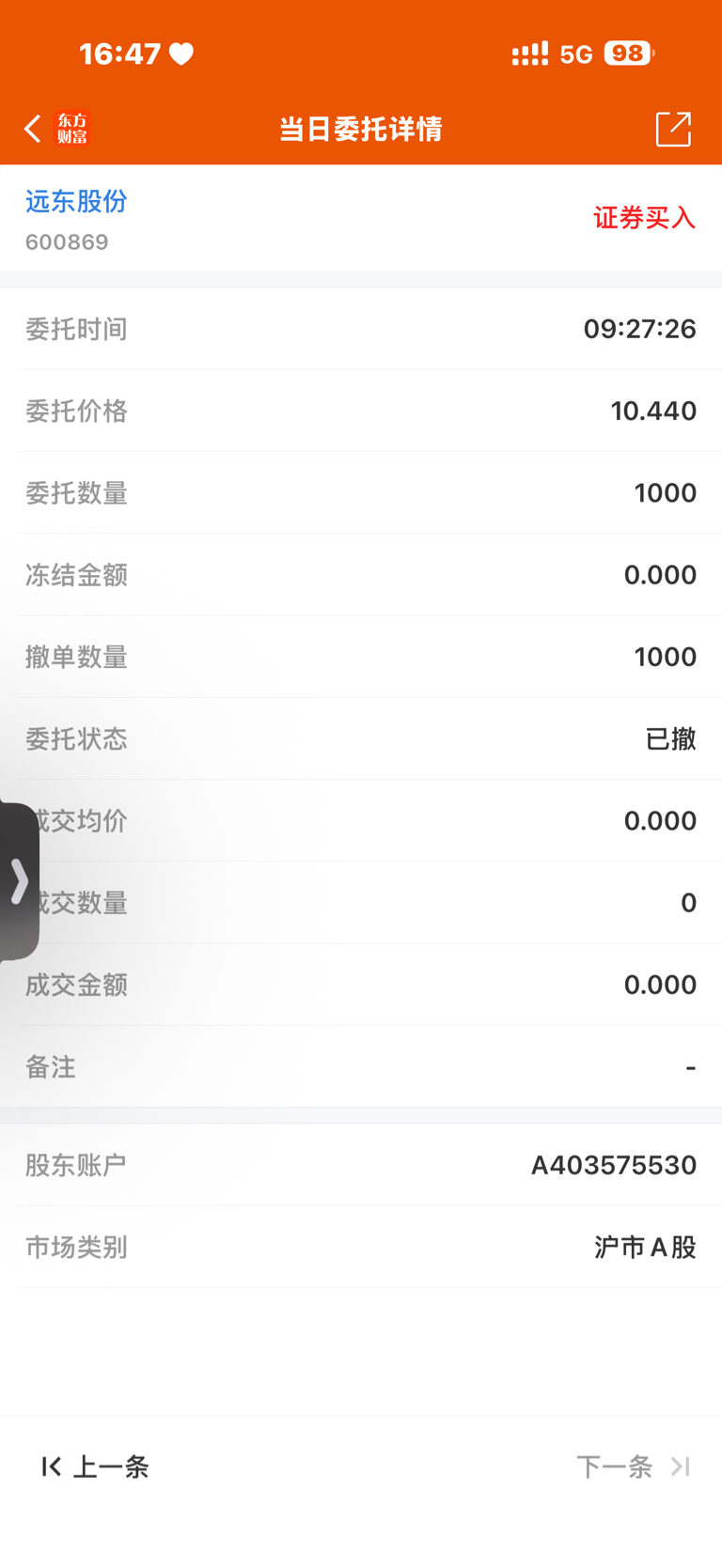 $远东股份(SH600869)$ 早盘没顶一字。本来想搞1000股买崩她。 挂了.44。结果最低43也没放我进去