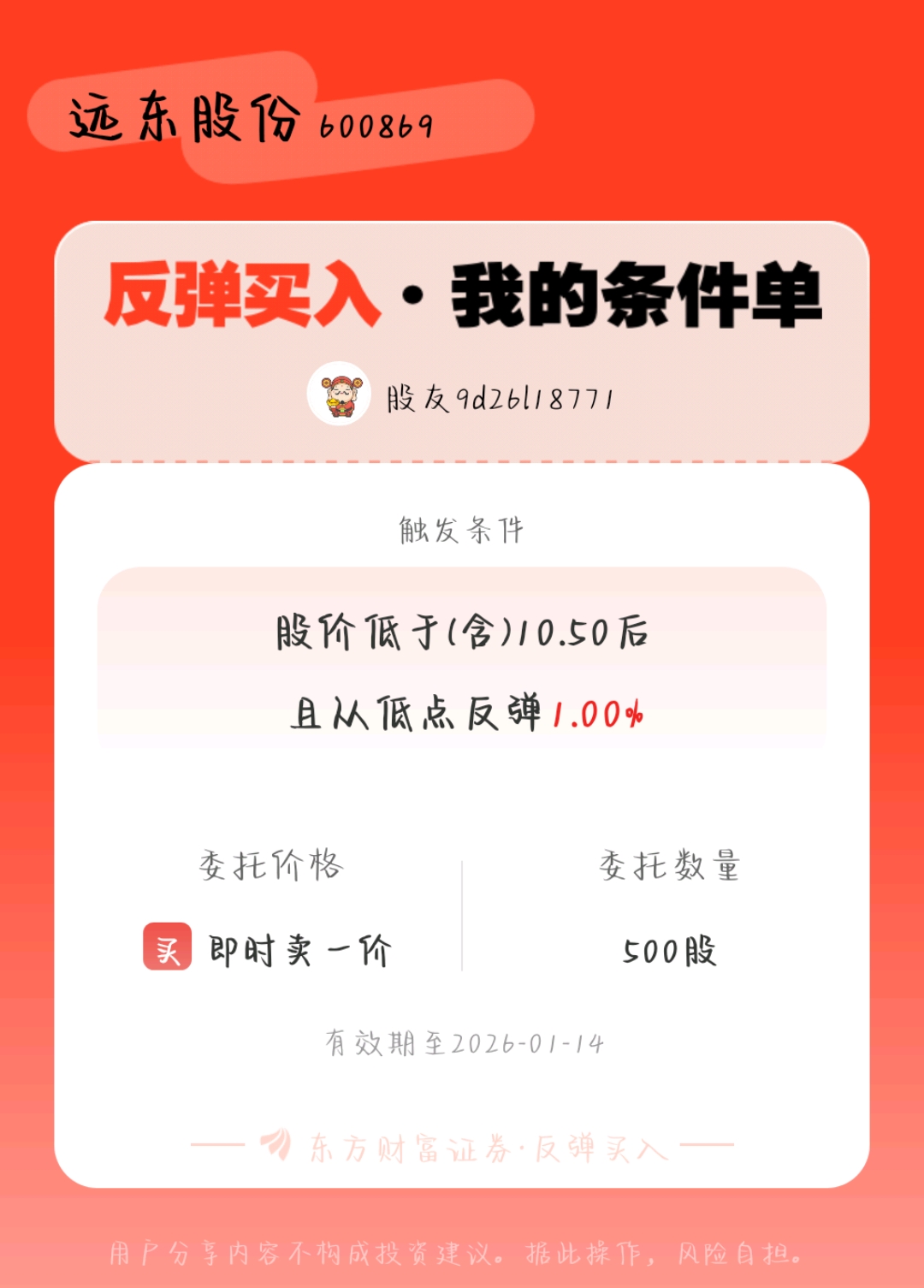 这条件单设置是不是有问题,到点了为什么触发不了~$远东股份(SH600869)$