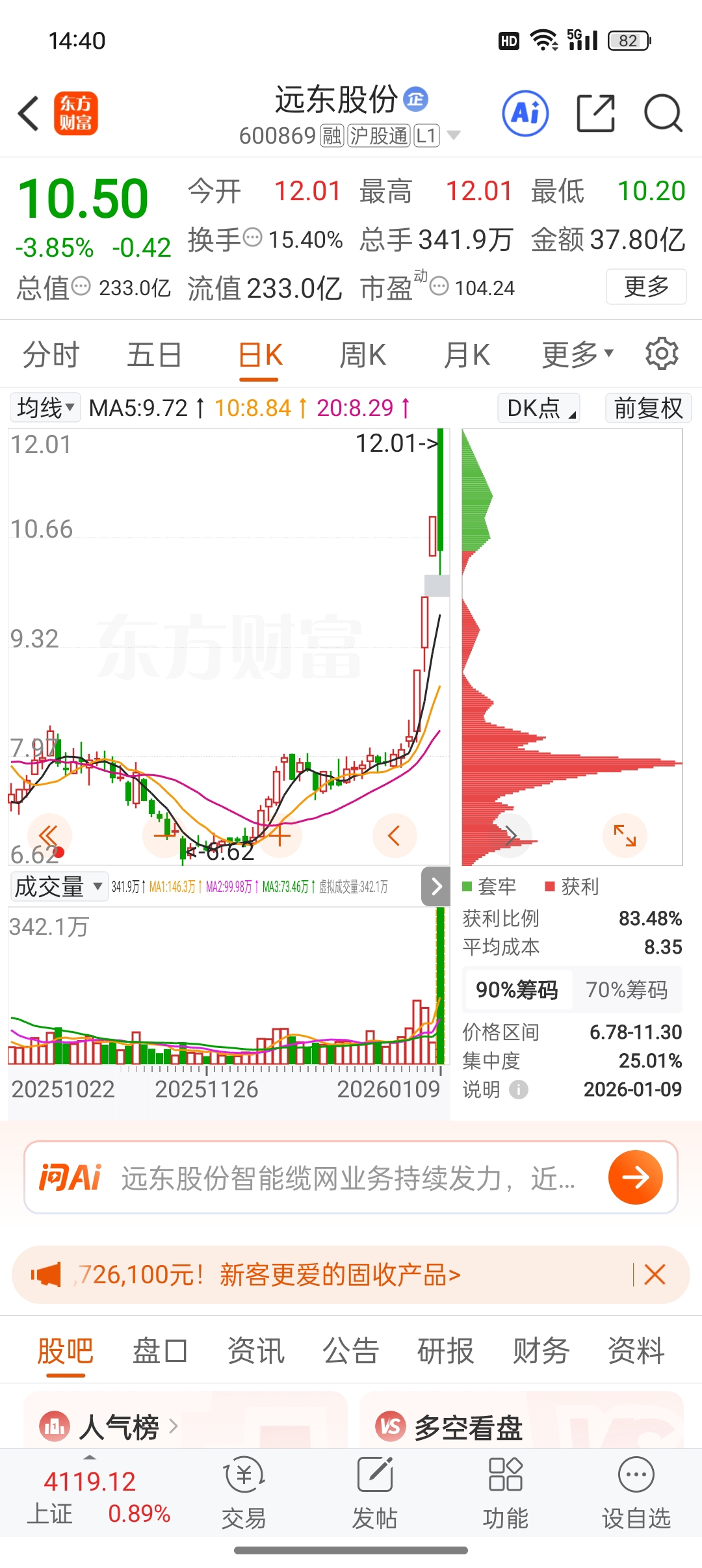 $远东股份(SH600869)$ 底部筹码没怎么动,为什么跌