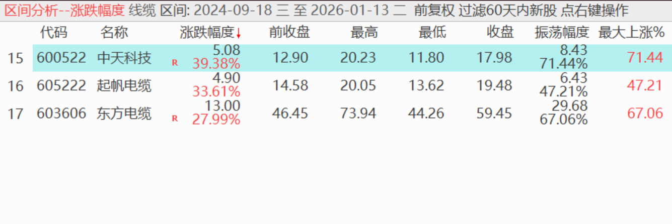 以24年9月最低点为本轮牛市起点的话,东子在线缆股里的涨幅表现还是挺强的
