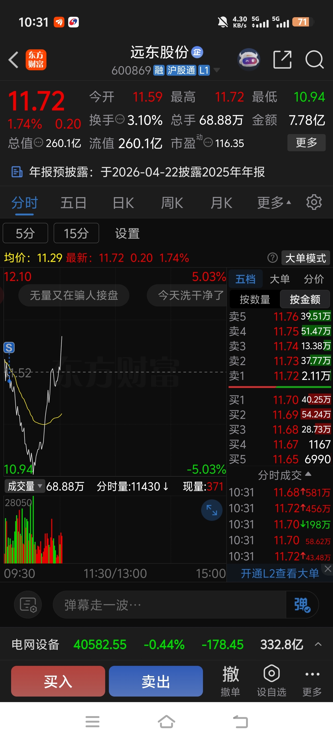 $远东股份(SH600869)$ 我眼巴巴看着11.08下不去了,但是我没接回来