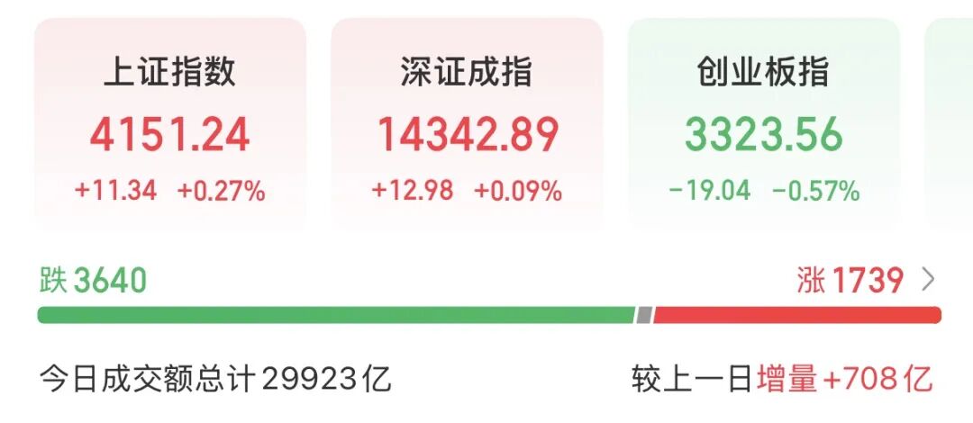 截至收盘,上证指数涨0.27%,深证成指涨0.09%,创业板指跌0.57%。