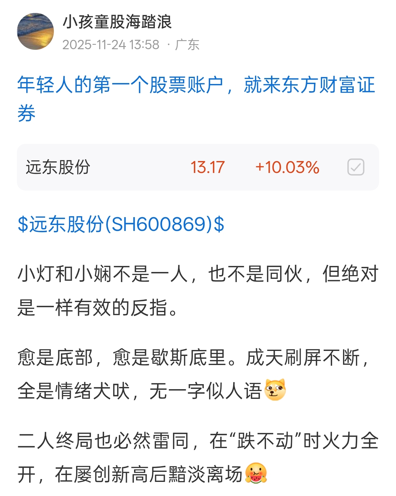 温馨提示: 1.根据《证券法》规定,禁止编造、传播虚假信息或者误导性信息,扰乱证券市场;2.用户在本社区发表的所有资料、言论等仅代表个人观点,与本网站立场无关,不对您构成任何投资建议。用户应基于自己的独立判断,自行决定证券投资并承担相应风险。《东方财富社区管理规定》