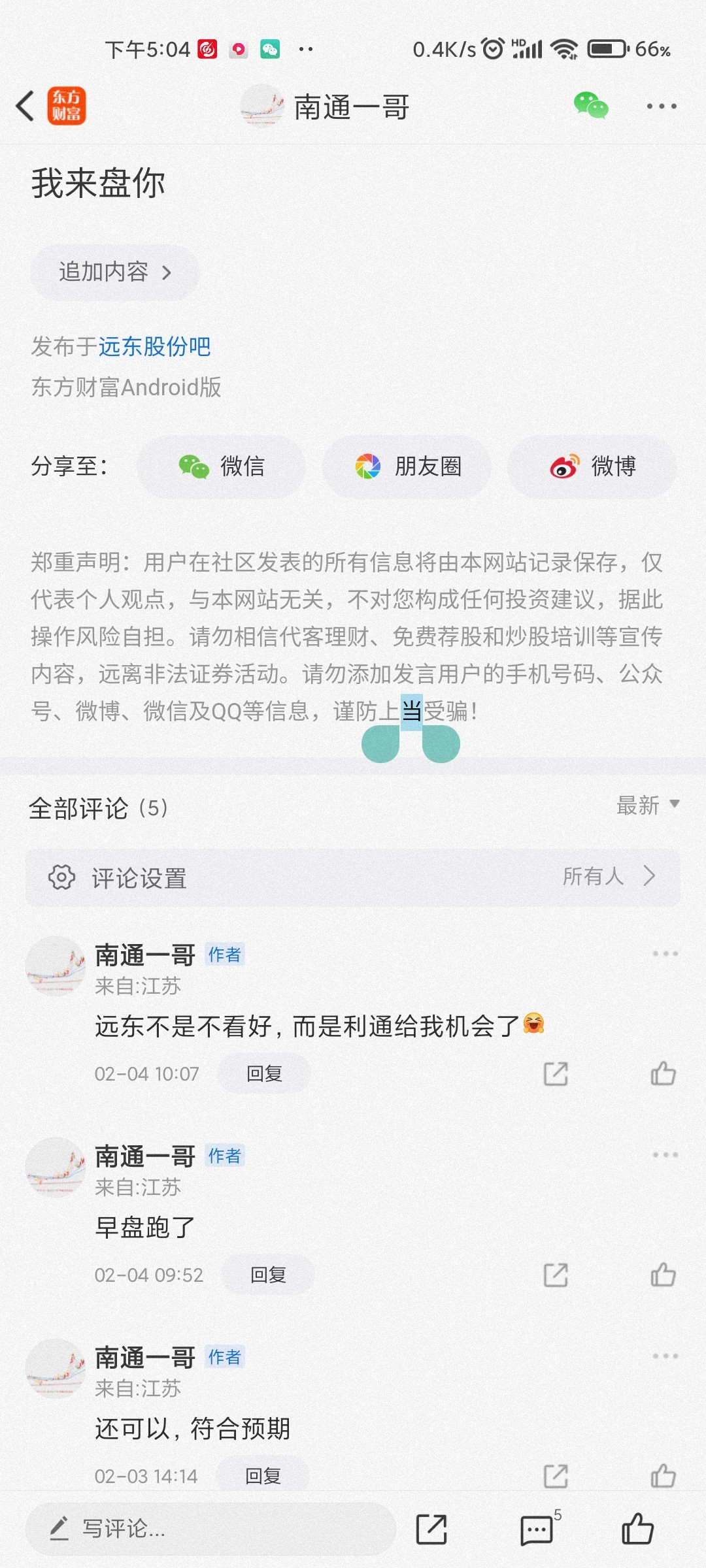 温馨提示: 1.根据《证券法》规定,禁止编造、传播虚假信息或者误导性信息,扰乱证券市场;2.用户在本社区发表的所有资料、言论等仅代表个人观点,与本网站立场无关,不对您构成任何投资建议。用户应基于自己的独立判断,自行决定证券投资并承担相应风险。《东方财富社区管理规定》