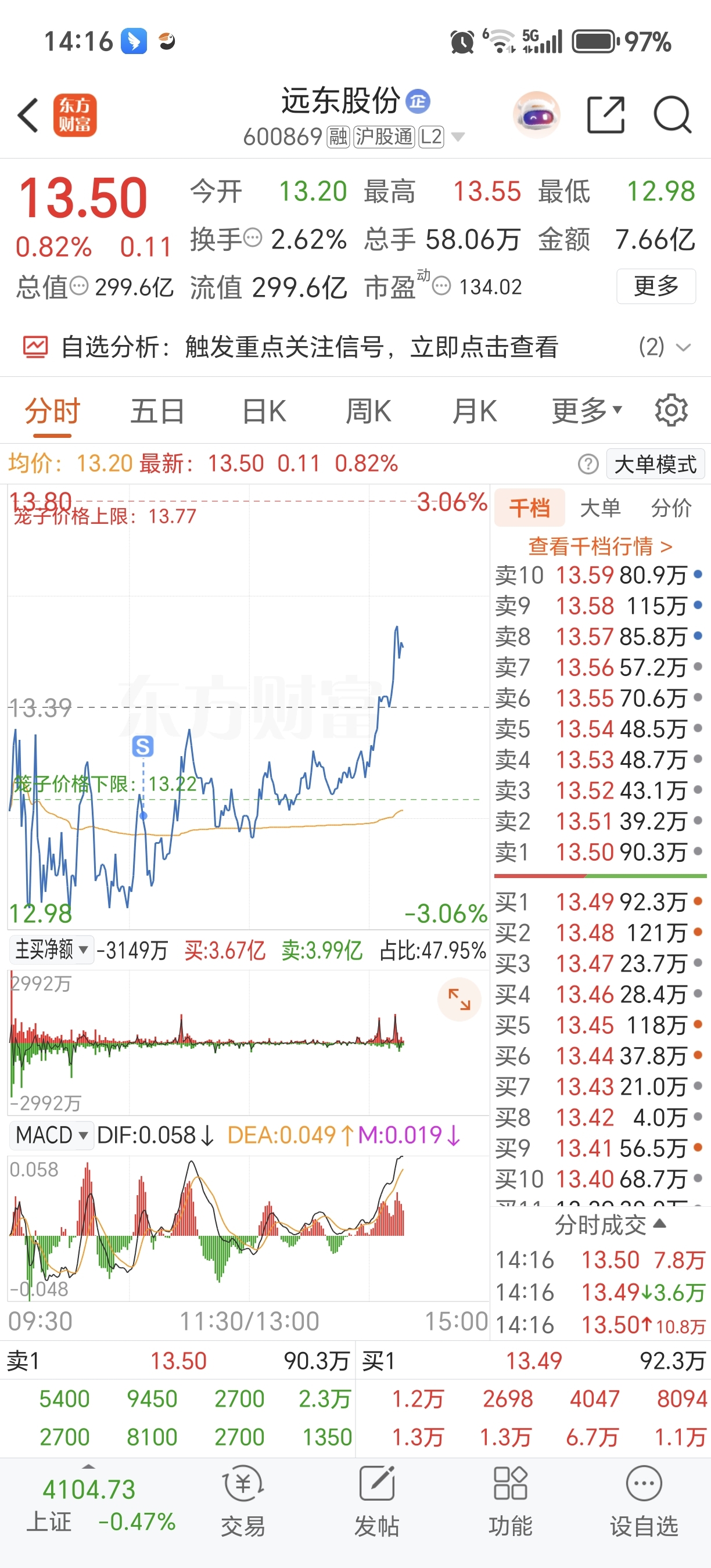 $远东,我早上卖的股份(SH600869)$
