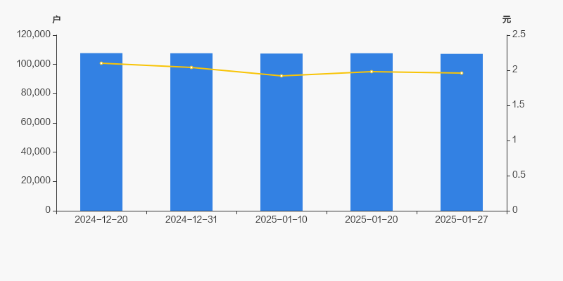 2024年12月20日至今,公司股东户数有所下降,区间跌幅为0.46%。2024年12月20日至2025年1月27日区间股价下降6.67%。
