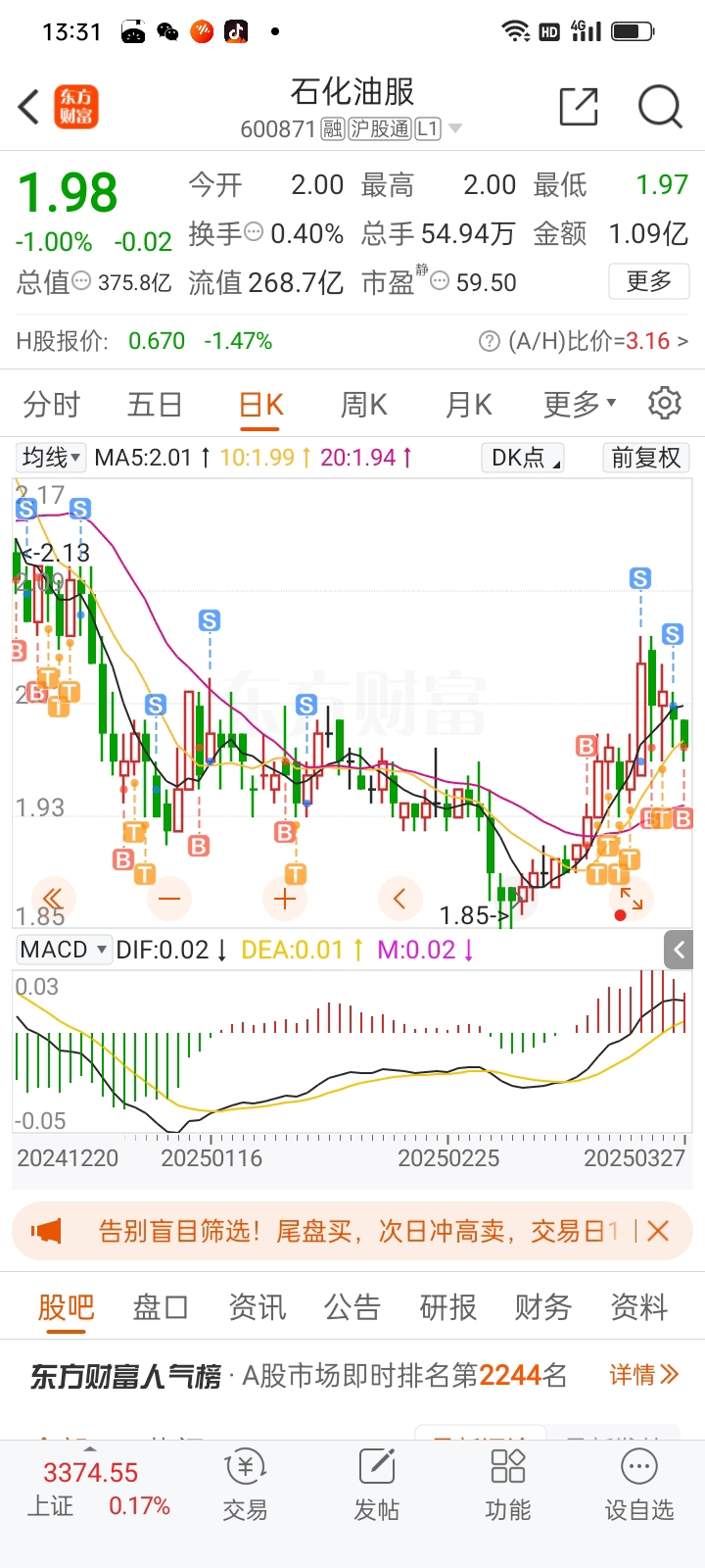 $石化油服(SH600871)$ 太难了
