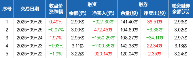石化油服:融资净偿还927.3万元,融资余额2.9亿元(09-26)