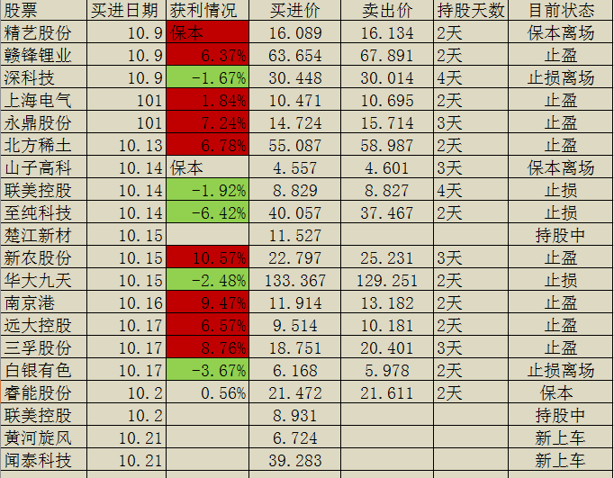 10月交易记录: