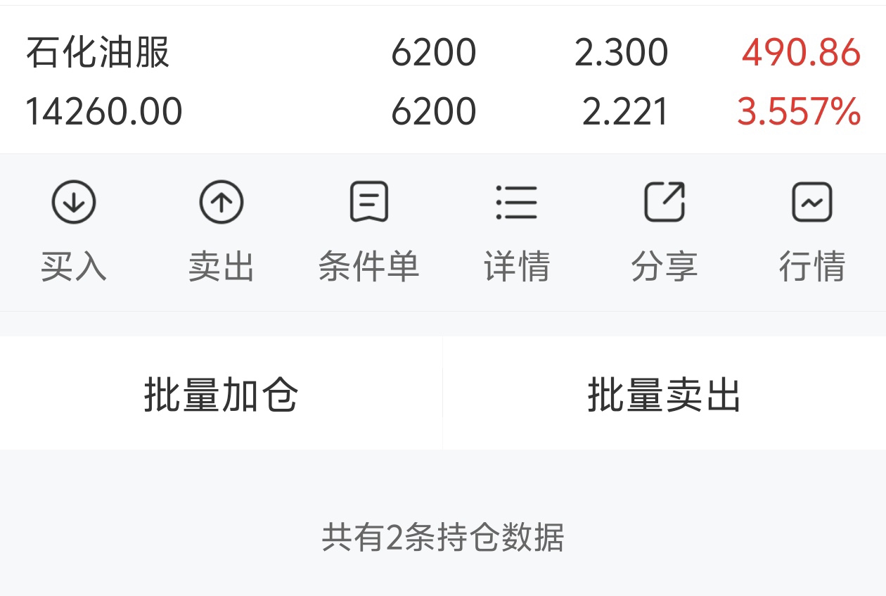 $石化油服(SH600871)$ 昨天买少了,试探一下居然涨停了,今天开了加仓。