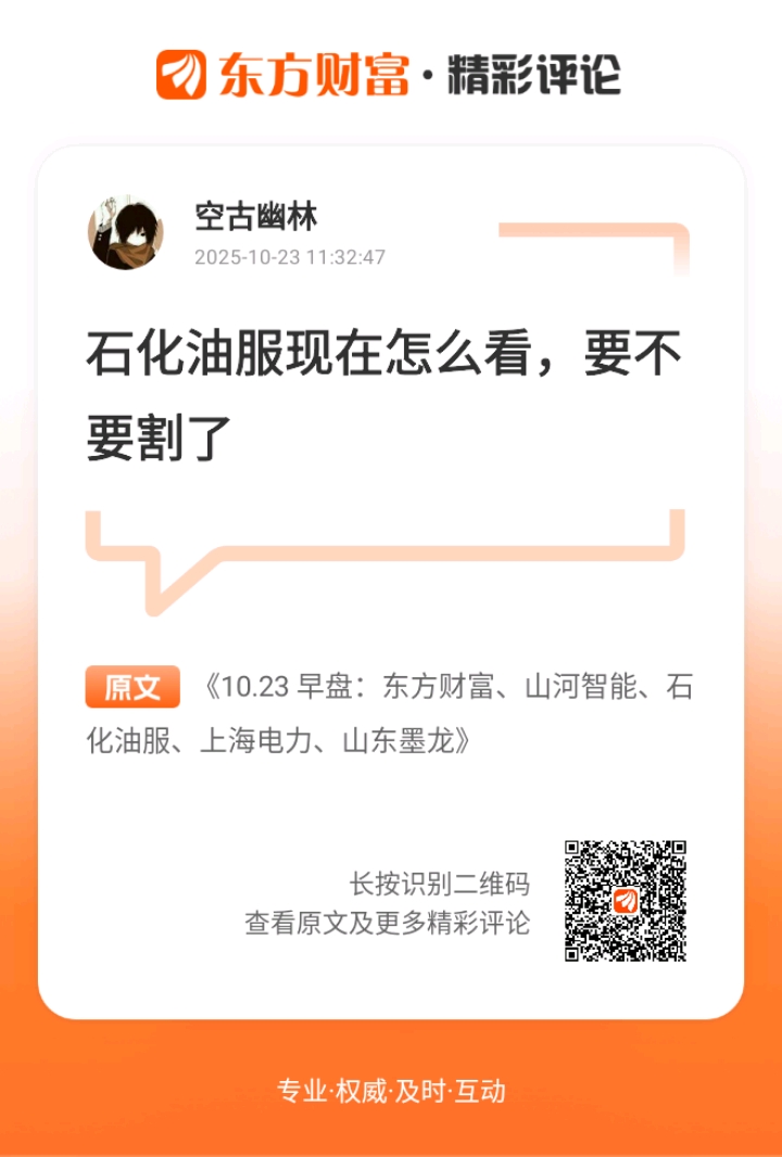 $石化油服(SH600871)$//@空古幽林 :石化油服现在怎么看,要不要割了