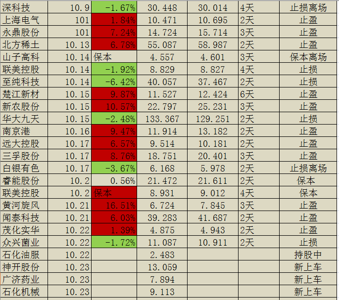 10月交易记录: