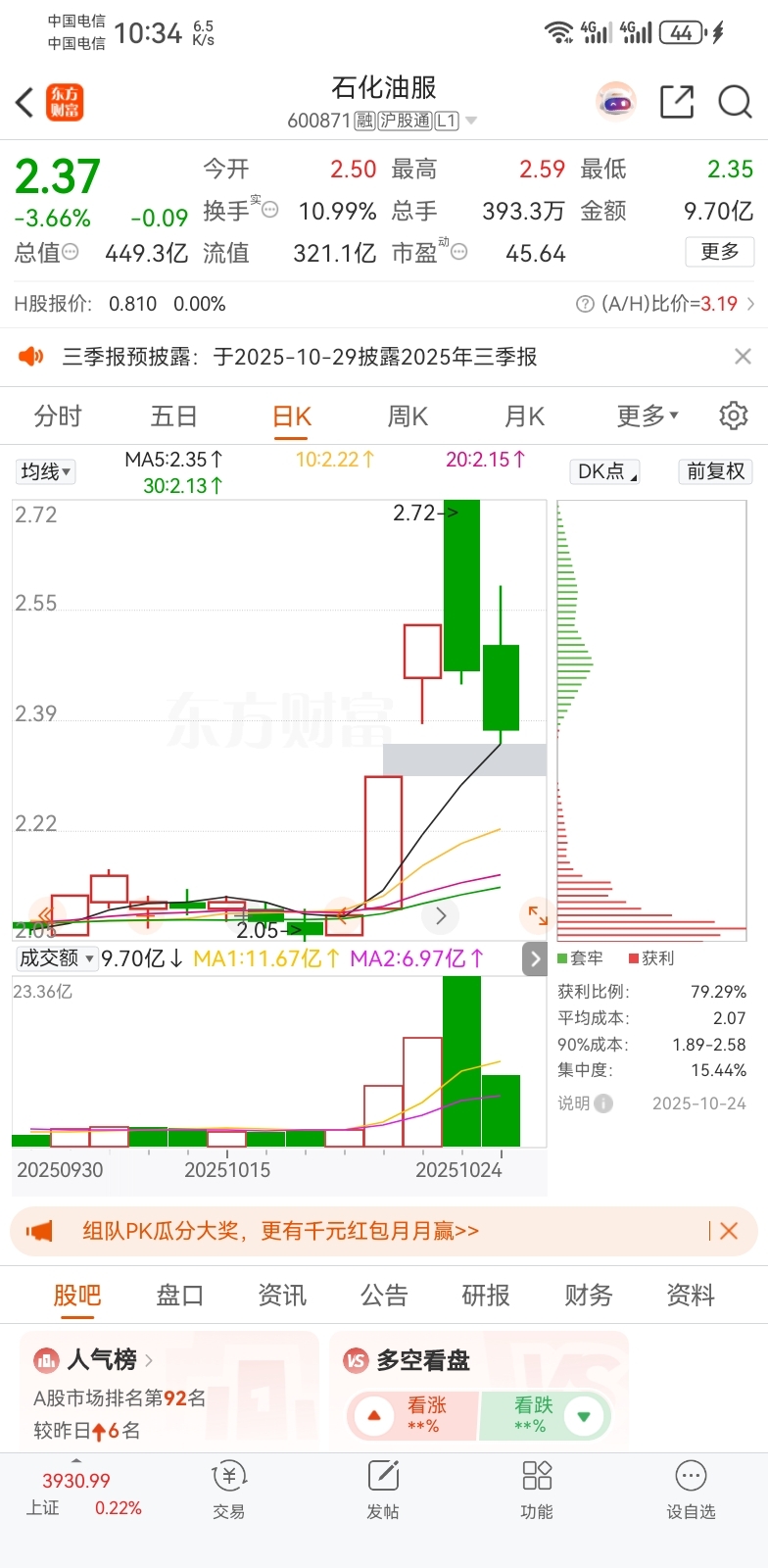 $石化油服(SH600871)$ 这个位置没买真是有点错,赌一下也没关系,放量上涨,然后缩量回调至5日均线,小仓位试一下也没错,可惜我已经有仓位了,今天高位要是都卖了,这个位置就绝了,个人意见,仅供参考