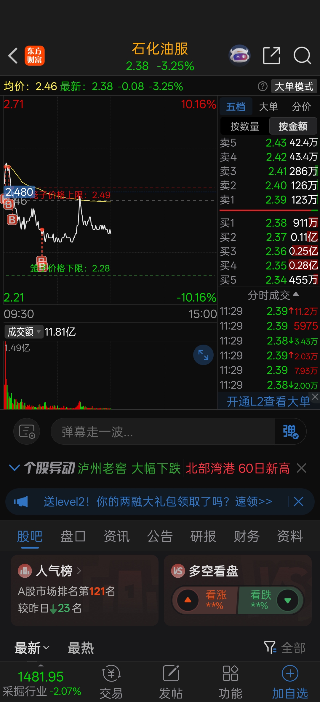 $石化油服(SH600871)$ 我也算是服了,开盘这阵仗还想着五分钟指定涨停赶紧买了点,希望下午翻红就行
