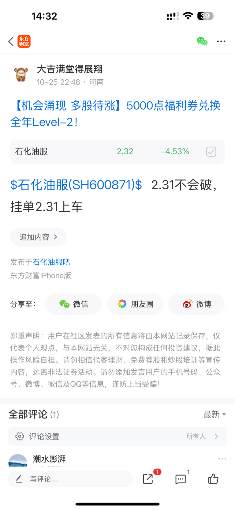 温馨提示: 1.根据《证券法》规定,禁止编造、传播虚假信息或者误导性信息,扰乱证券市场;2.用户在本社区发表的所有资料、言论等仅代表个人观点,与本网站立场无关,不对您构成任何投资建议。用户应基于自己的独立判断,自行决定证券投资并承担相应风险。《东方财富社区管理规定》