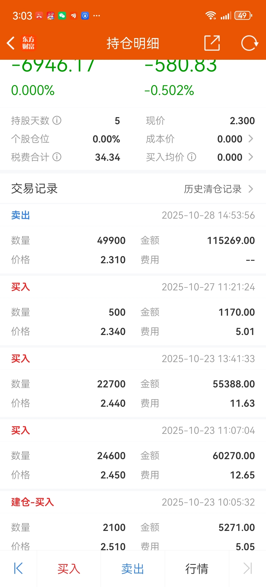 拿万向二十天,早俩天亏1.6万清仓,换了这个石化油服拿了俩天,织布机一样清仓,玩