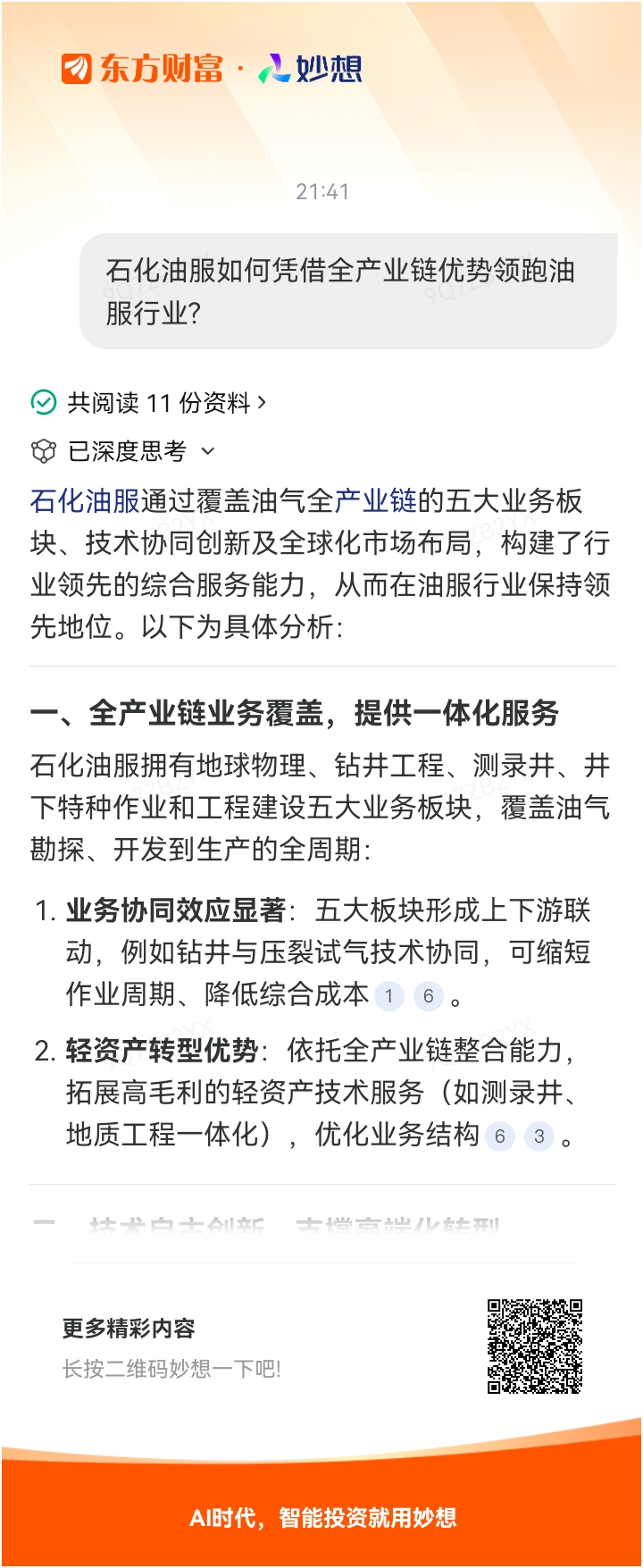 #@妙想,你怎么看?# 妙想一下:石化油服如何凭借全产业链优势领跑油服行业?