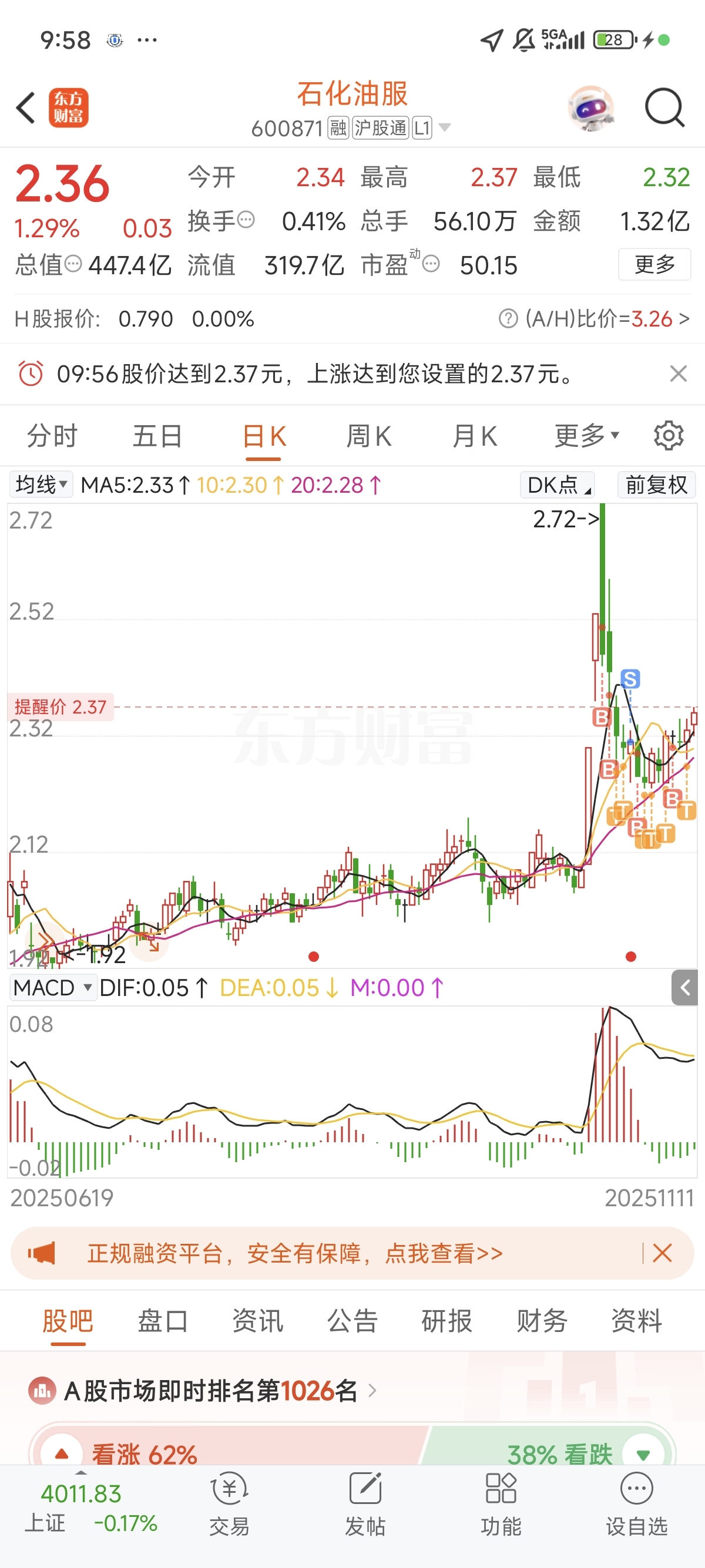 $石化油服(SH600871)$ 不枉我买来买去的,没亏就行
