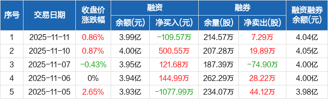 石化油服:融资净偿还109.57万元,融资余额3.99亿元(11-11)