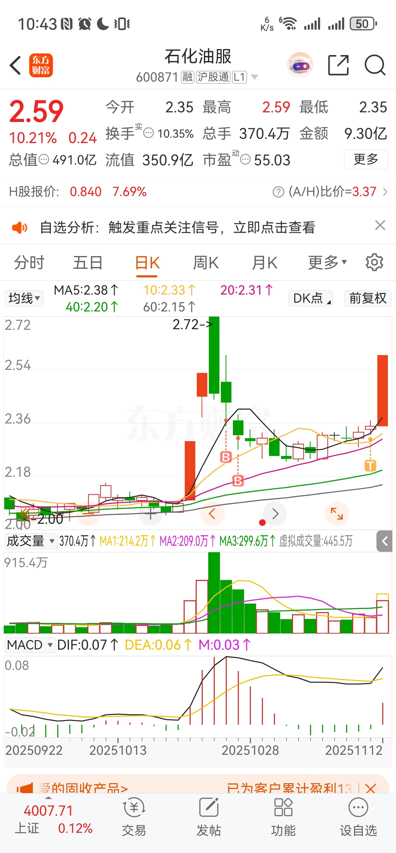 $石化油服(SH600871)$ 昨天加了重仓,今天美美吃肉