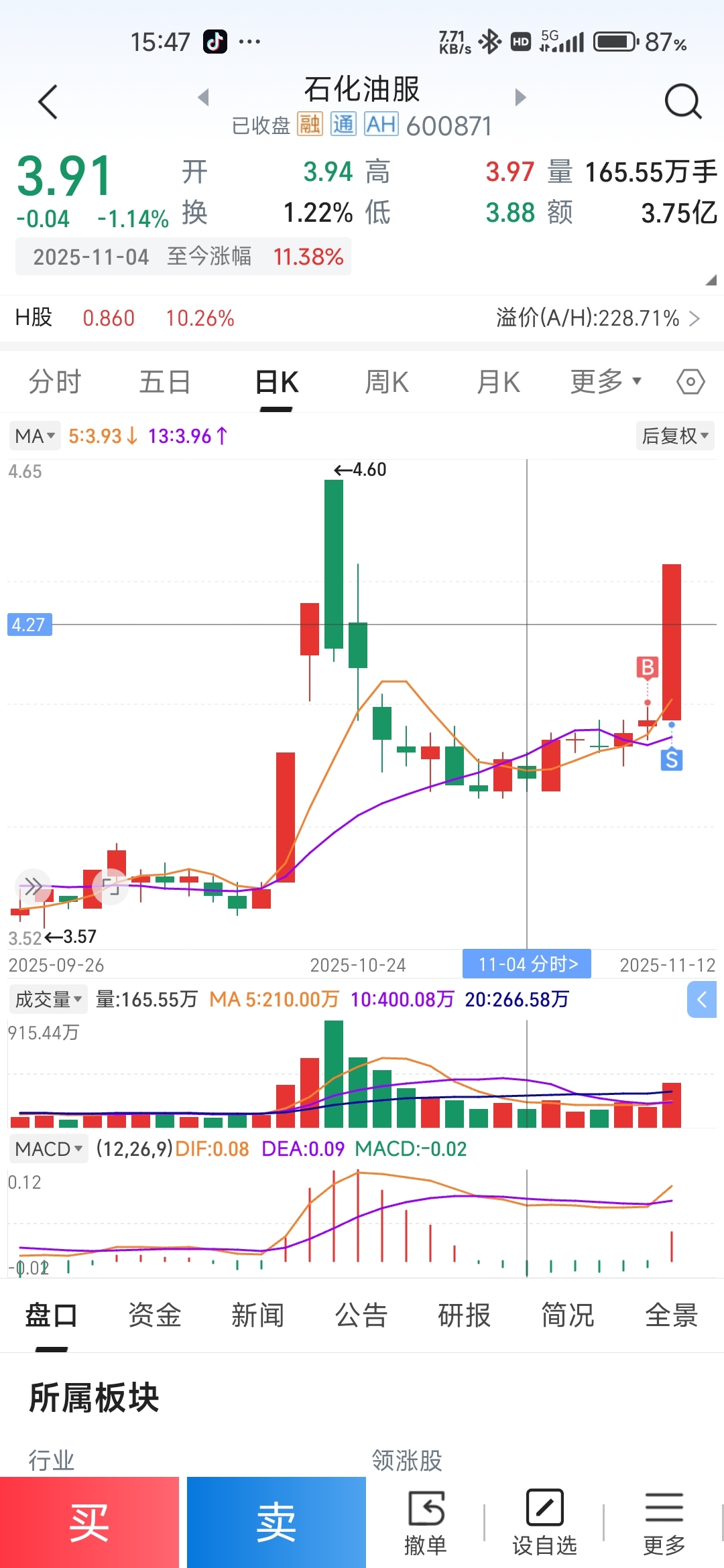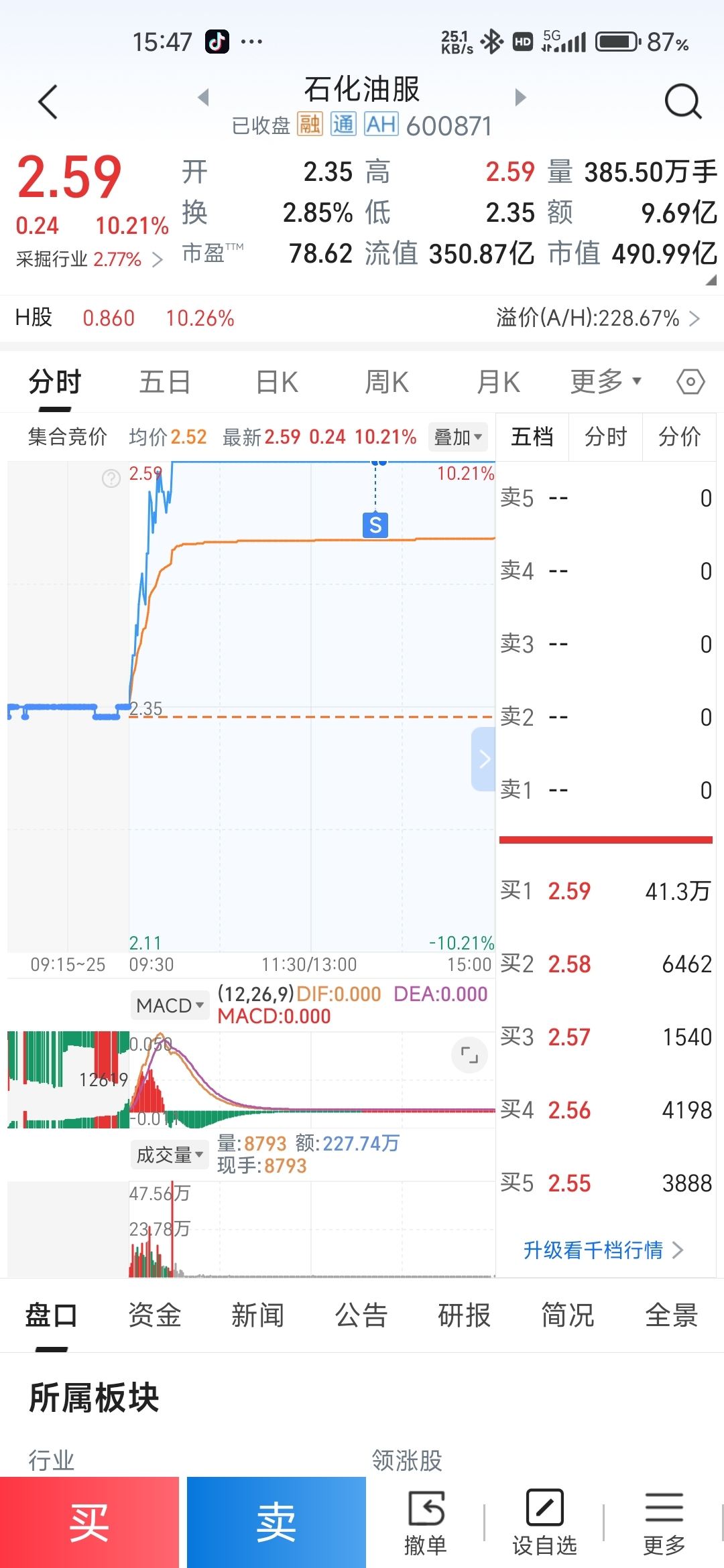 $石化油服(SH600871)$ 只要运气好一点,我有自信抓到涨停,但连板股对我来说有点难,所以卖了,已经很多次了,头天涨停,板也是好板。没有漏量,封单死死的,第二天直接给你来个低开,把你整的丈二的头摸不着!也许现在的行情就这样吧。。。。。不贪了,赚一点就走人吧!留下的兄弟发财。