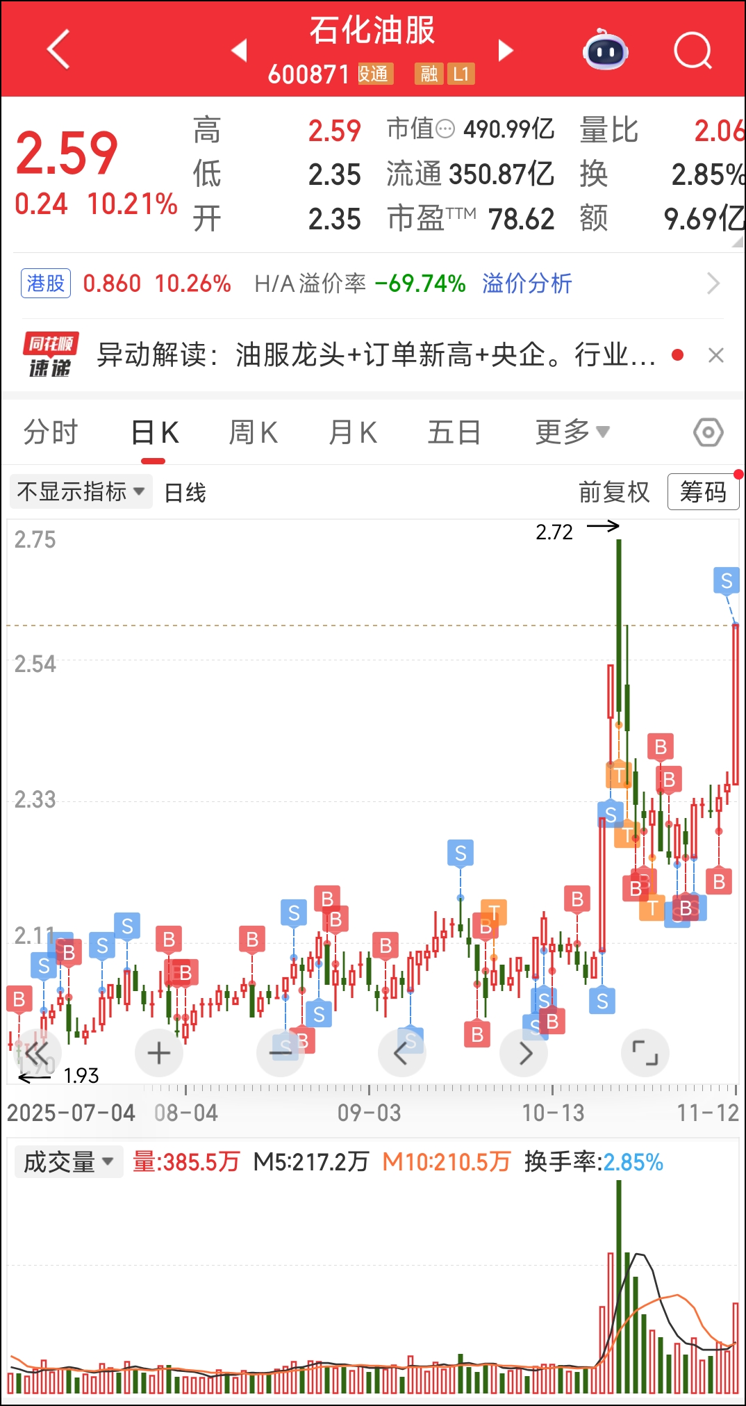 $石化油服(SH600871)$ 连续涨停板要来了,姐只能说这么多,嘻嘻 #炒股日记# #收盘点评# #强势机会#