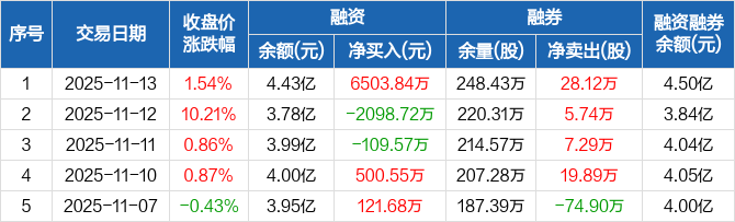 石化油服:融资净买入6503.84万元,融资余额4.43亿元(11-13)