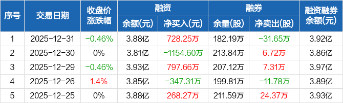 石化油服:融资净买入728.25万元,融资余额3.88亿元(12-31)