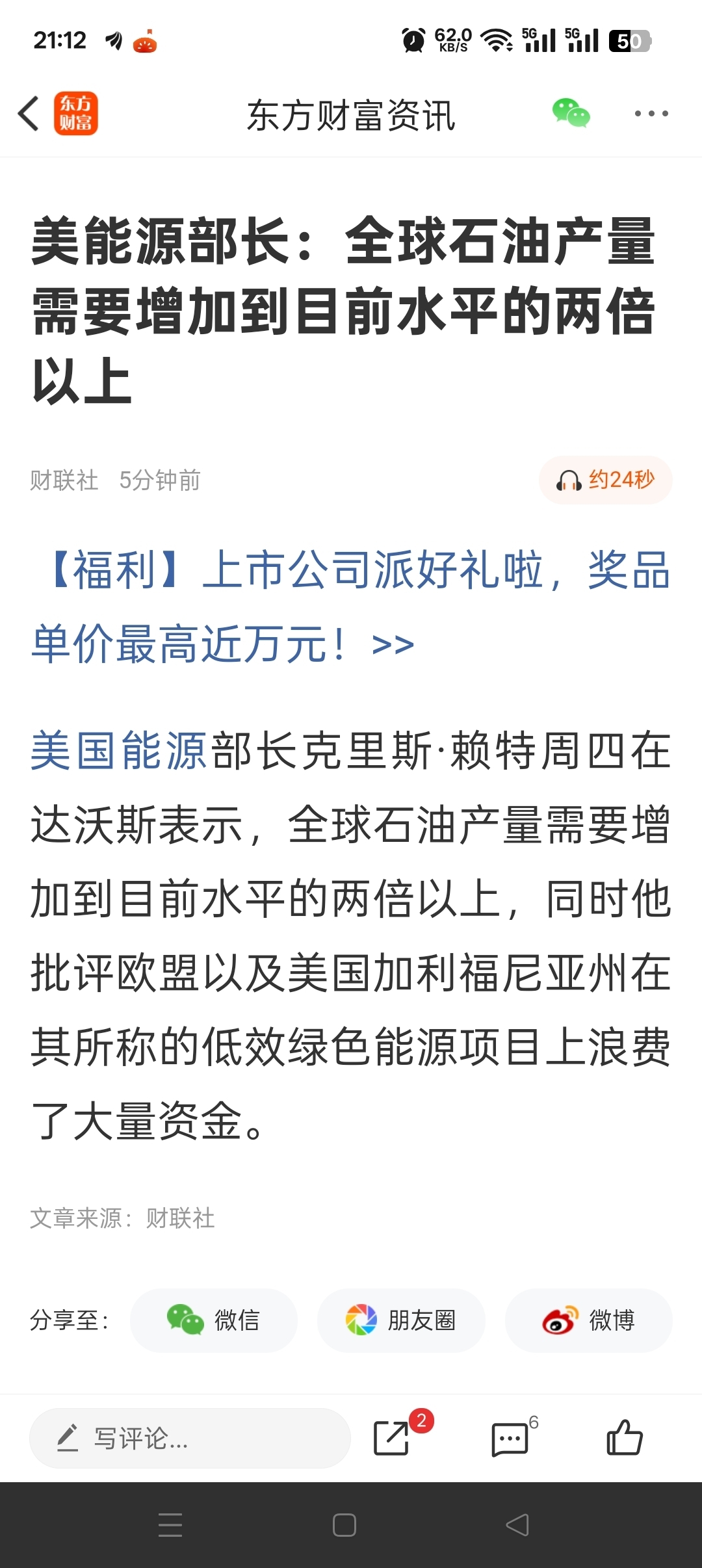 这个消息应该是利空石油,利好油服吧