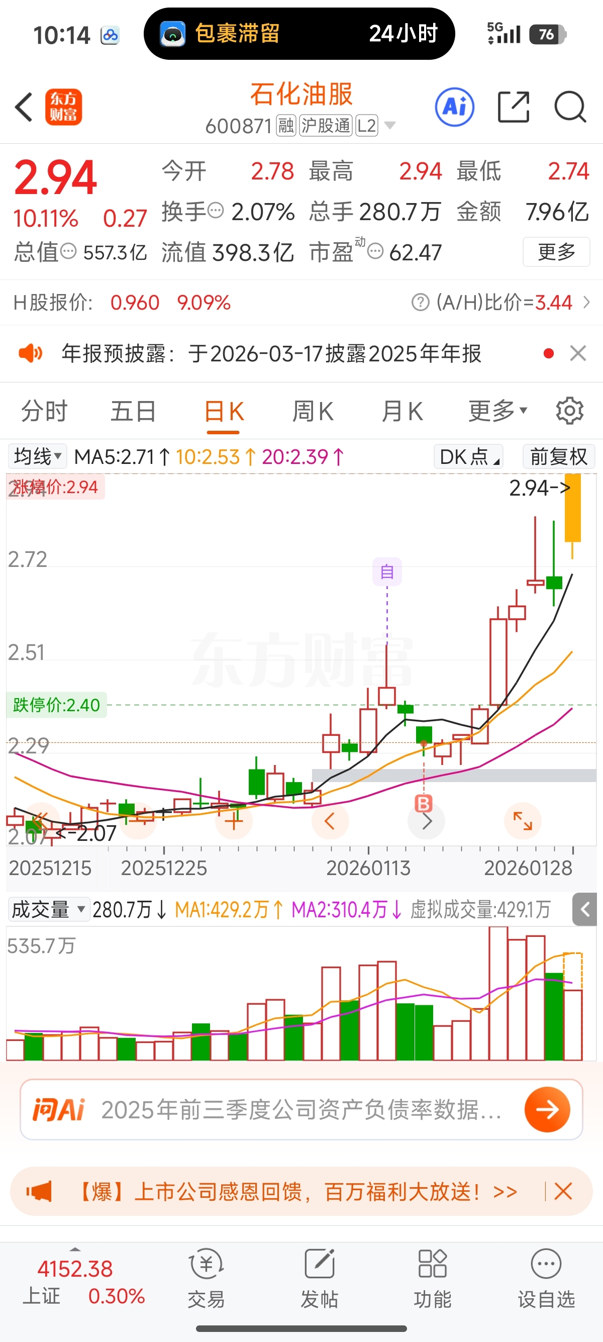 $石化油服(SH600871)$ 坚定的多头应该得到回报