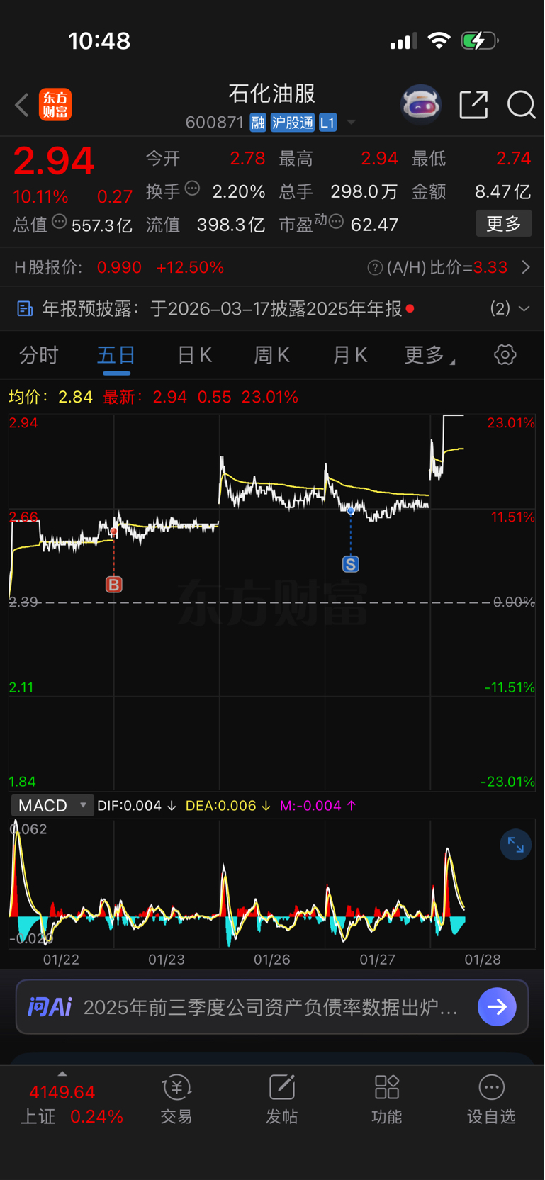 $石化油服(SH600871)$ 看好,可惜卖飞了!