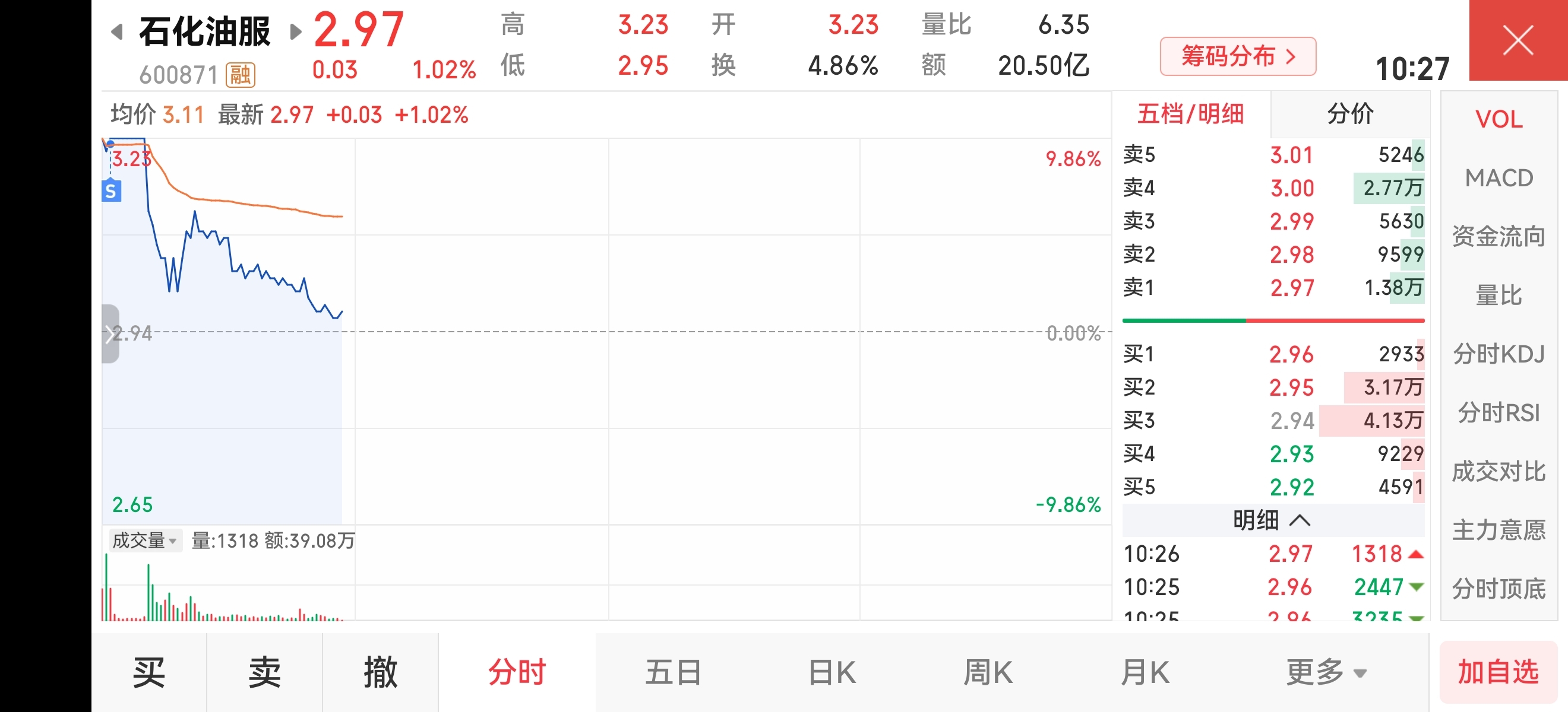 $石化油服(SH600871)$ 卖的 舒坦了…没敢都接回来