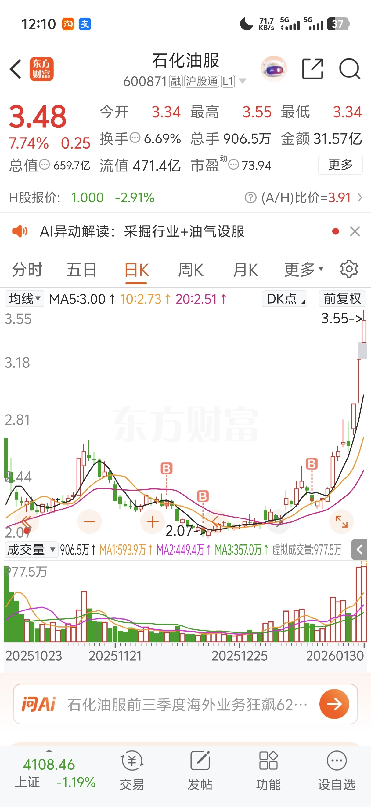 $石化油服(SH600871)$ 好,好害怕