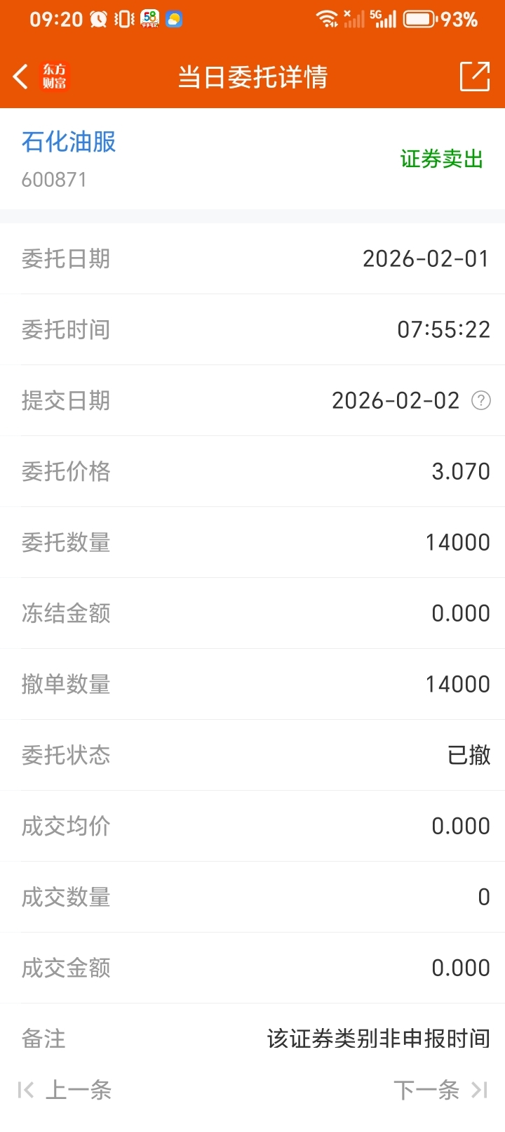 $石化油服(SH600871)$ 本韭菜今天完全能出去,因为昨天就挂了跌停出,最后撤单了,撤单也不后悔