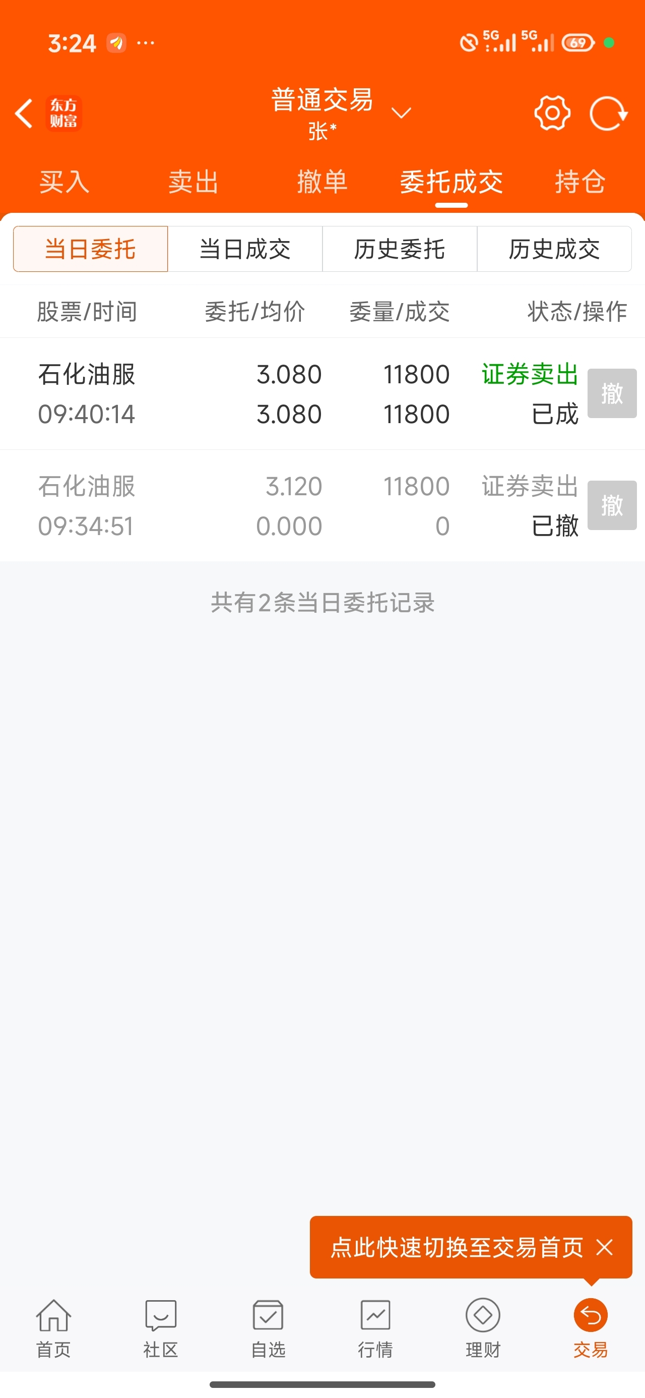 $石化油服(SH600871)$ 可惜下午没看盘,没接回去。明天不会直接板了吧。