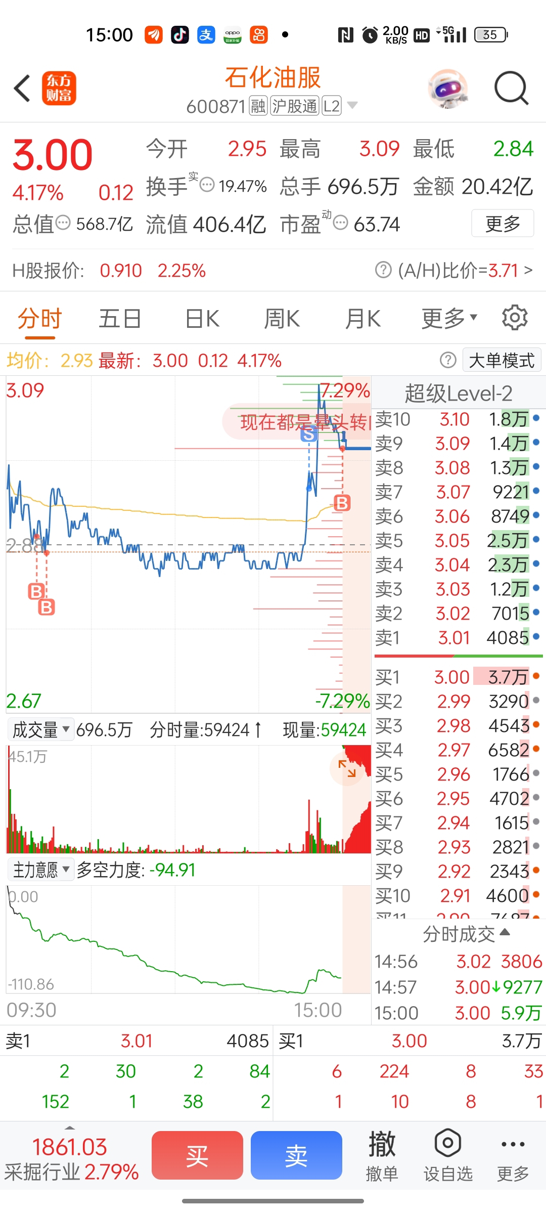 $石化油服(SH600871)$ 我去了半仓筹码没了