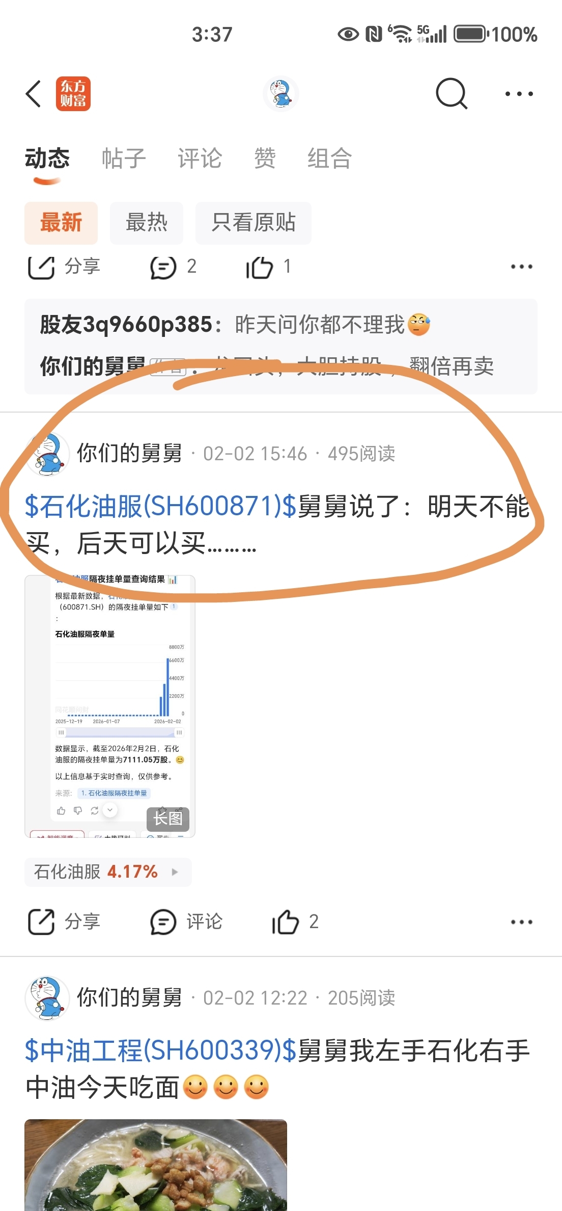 $石化油服(SH600871)$ 舅舅说:今天可以买,大家买了吗?