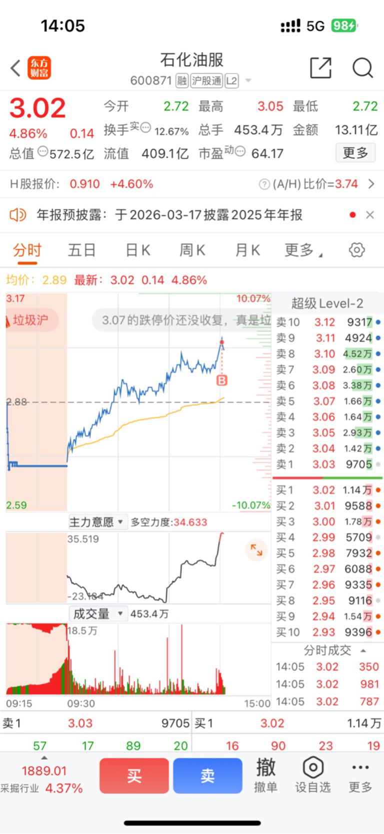 $石化油服(SH600871)$ 对不起,被我买崩了