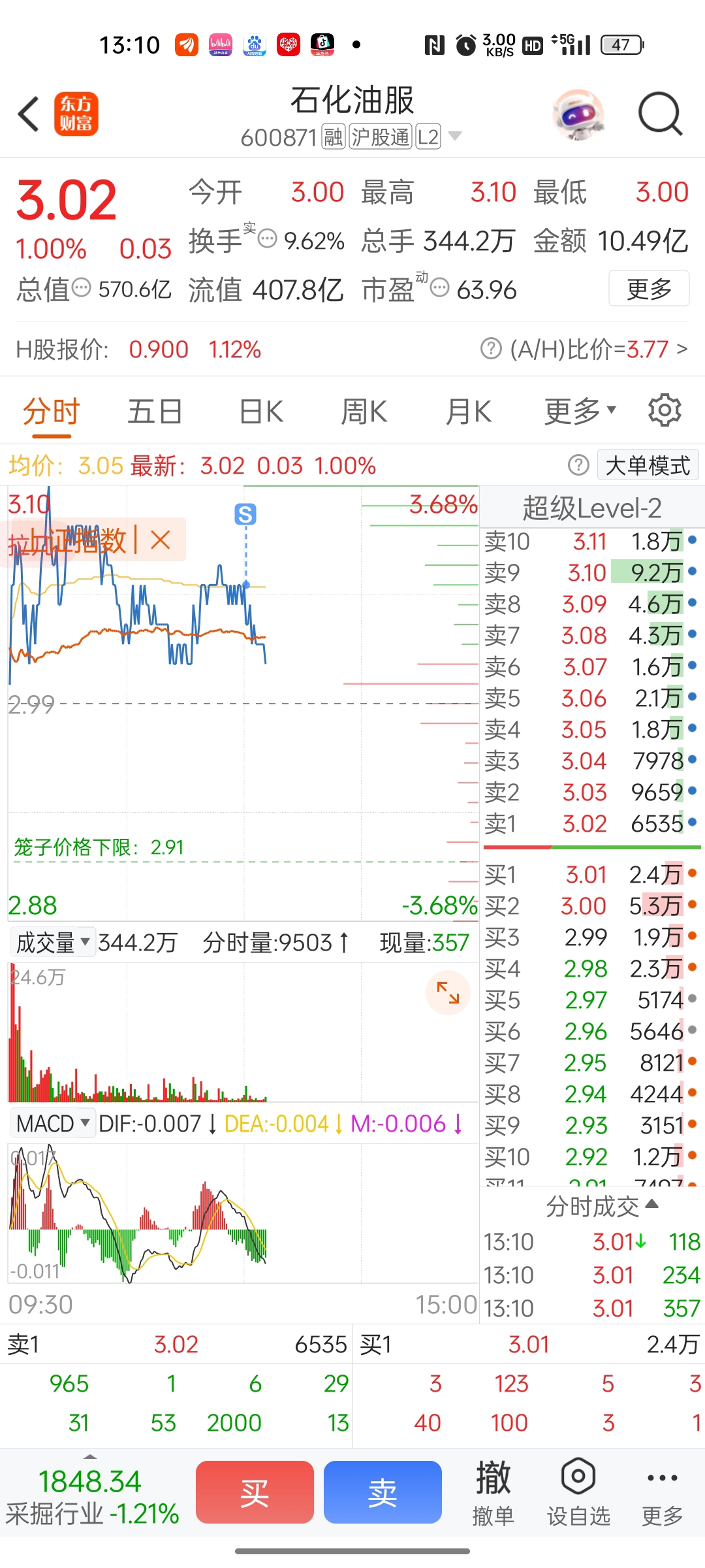 $石化油服(SH600871)$ 没戏清仓了